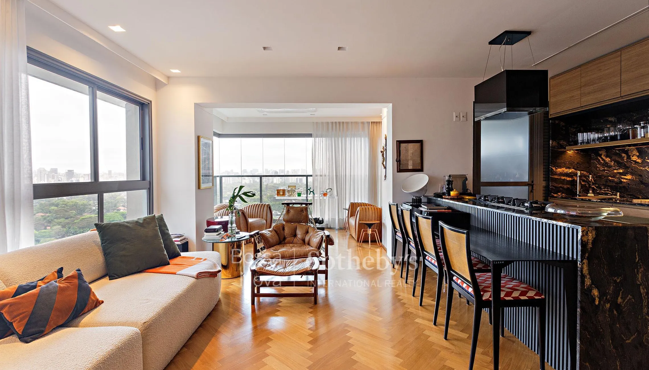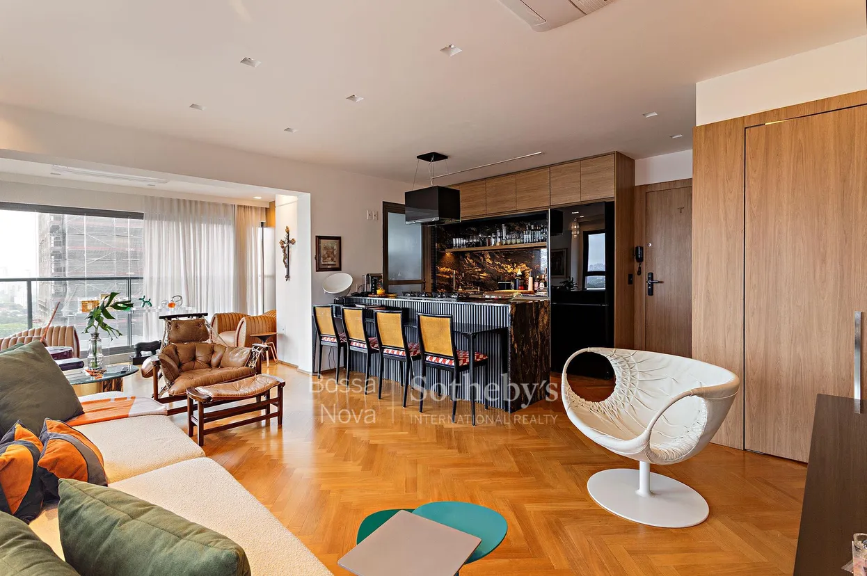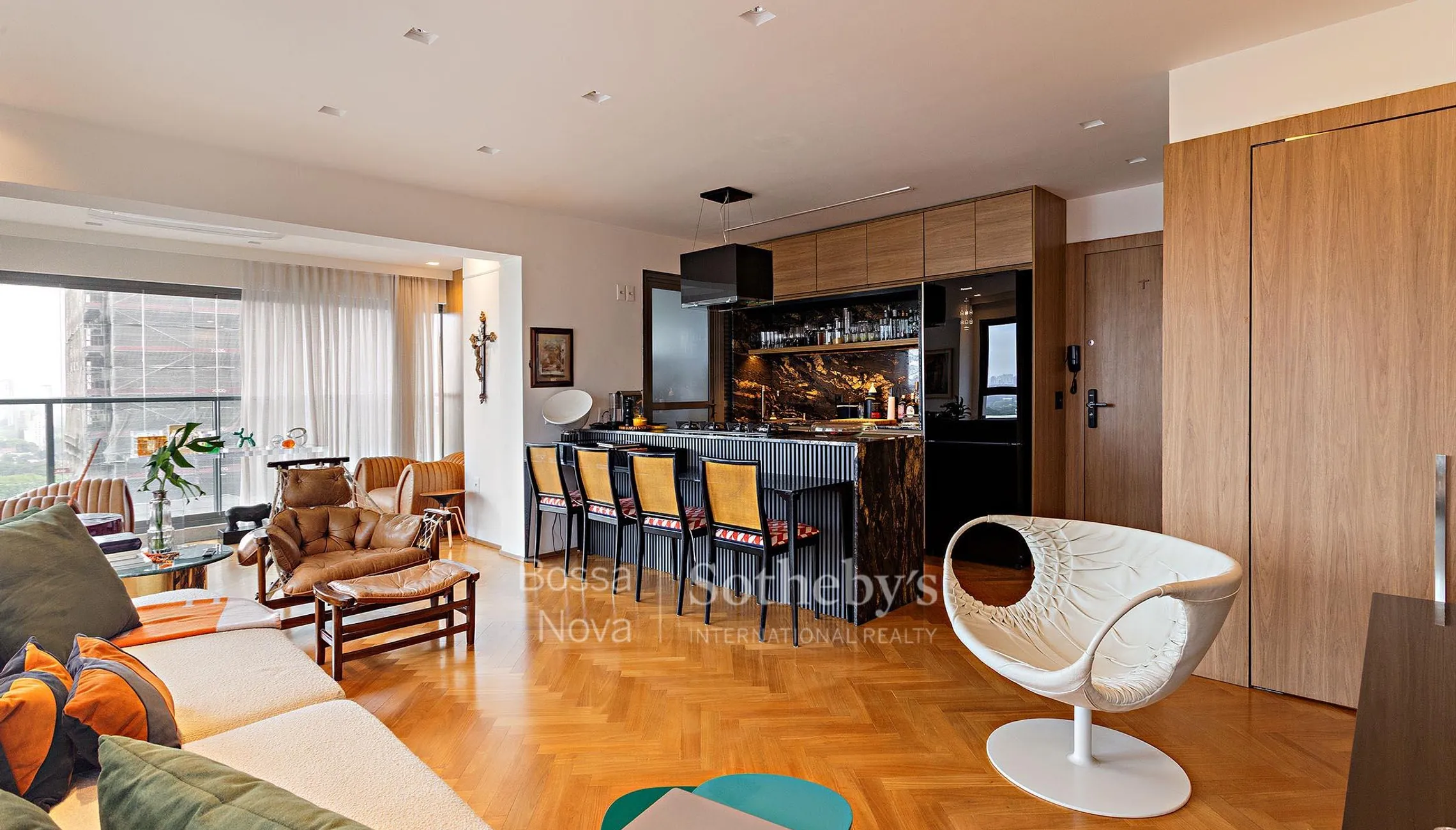 Este apartamento de planta versátil está em edifício contemporâneo entregue há cerca de quatro anos. O projeto original com dois dormitórios foi transformado em uma ampla suíte, ampliando os espaços e favorecendo a integração. A área social se destaca pelo living generoso, com varanda incorporada que acomoda estar e jantar com equilíbrio. A cozinha aberta conecta-se ao ambiente principal e contribui para a funcionalidade do dia a dia, enquanto a área de serviço com lavanderia e o lavabo complementam a planta. A reforma valorizou a entrada de luz natural e a circulação, resultando em um apartamento moderno e bem distribuído.