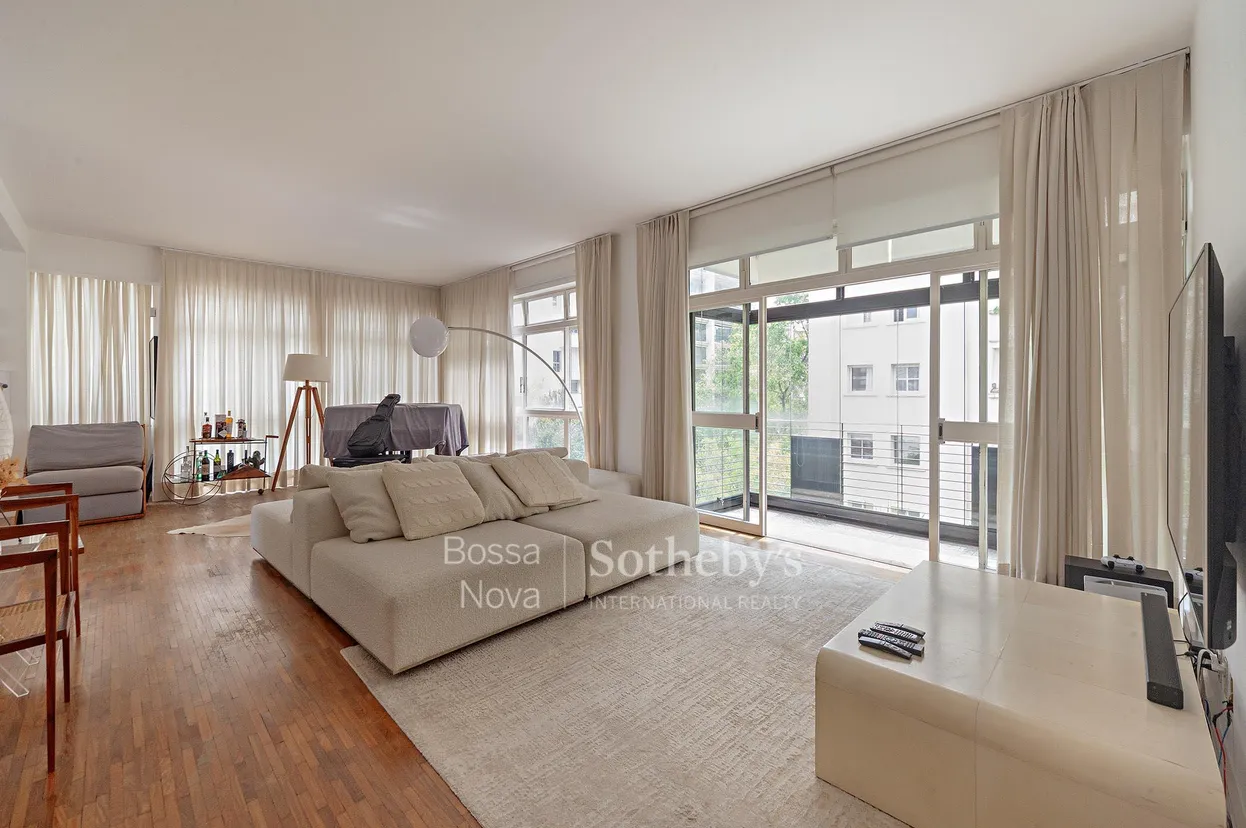 Apartamento com projeto assinado em 1961 pelo engenheiro Henrique Alexander, em localização estratégica com acesso a parques, escolas e clubes. A área social é marcada por amplos janelões que garantem luminosidade e ventilação natural, além de um living com diversos ambientes integrados. A cozinha se destaca pelo espaço generoso, com marcenaria planejada e ilha central. A área íntima é composta por três dormitórios, sendo uma suíte, todos com armários embutidos. O imóvel dispõe ainda de duas vagas de garagem.