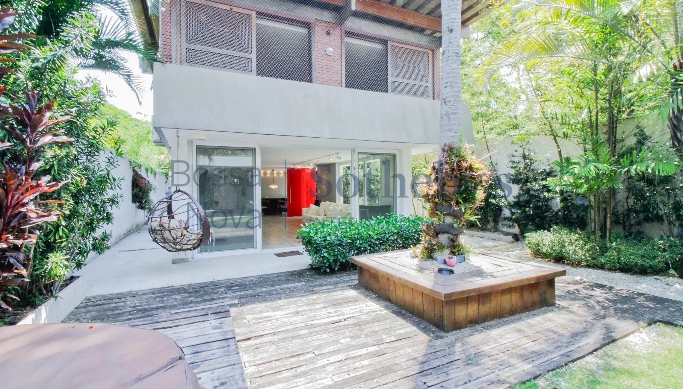 Casa localizada no Jardim Europa, em área próxima ao Clube Pinheiros e ao Shopping Iguatemi, com ambientes que recebem boa iluminação natural. A área social no piso inferior é composta por living para diversos ambientes, home theater, sala de jantar, lavabo, copa e cozinha, além de lavanderia coberta e dormitório de apoio. Esses espaços se conectam ao jardim, onde há área gourmet com churrasqueira, ofurô e vestiário. No piso superior está a área íntima, formada por dois dormitórios que compartilham um banheiro, por uma suíte atualmente utilizada como escritório integrado à sala íntima e pela suíte principal com closet, sendo todos os ambientes climatizados. A propriedade dispõe de garagem para três vagas e depósito.