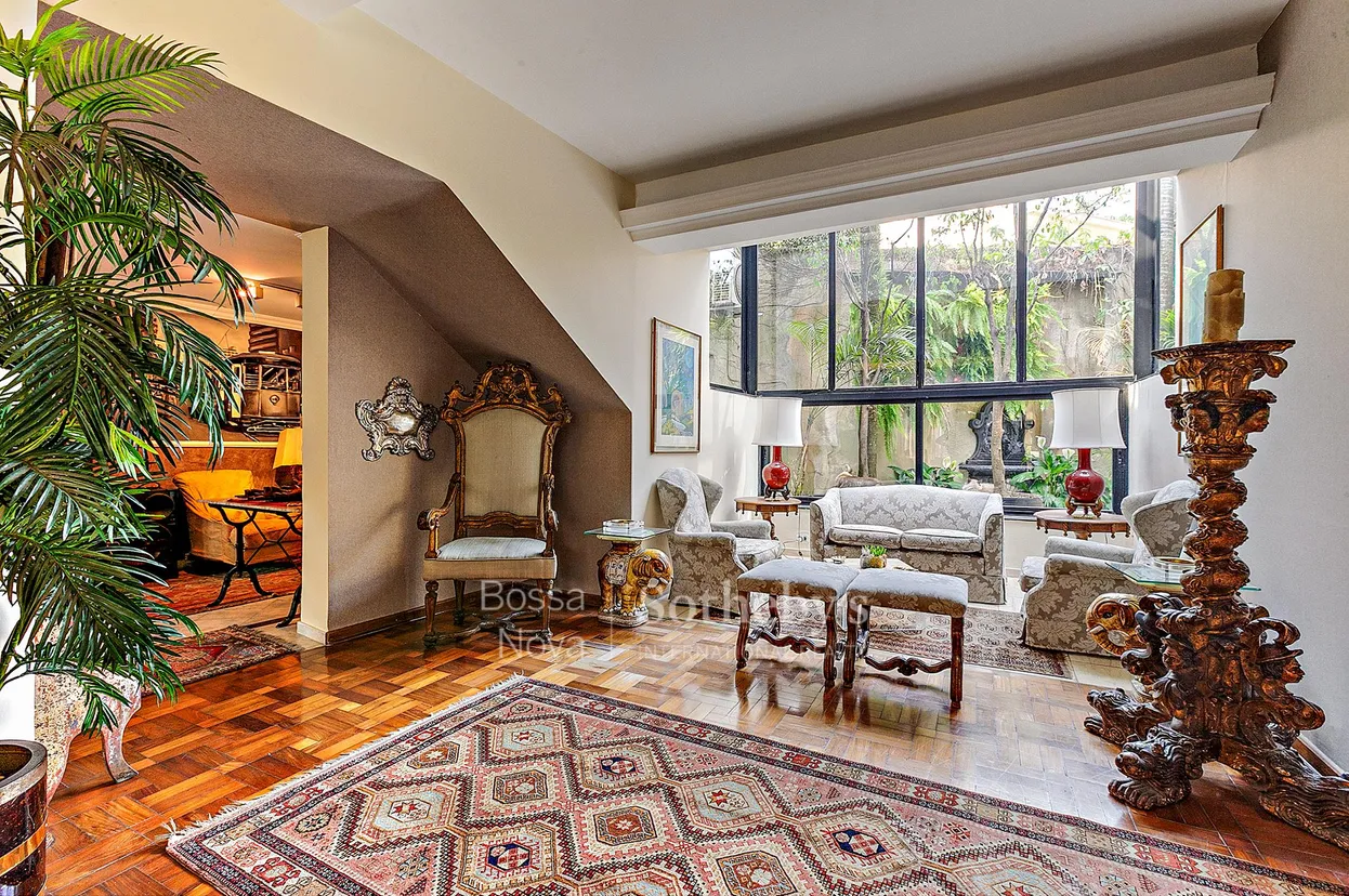 Casa no arborizado bairro Jardim Europa, localizada entre as Avenidas Europa e Nove de Julho, em uma região repleta de bons restaurantes e escolas, como Gracinha e Saint Paul's. O living possui quatro ambientes integrados, com um imponente hall de entrada, sala de estar, sala de jantar e um bar intimista. No térreo, encontram-se também a cozinha, sala de almoço, lavanderia, quartos para funcionários e um ateliê. No piso superior, há quatro suítes, sendo a master com closet, todas com ar-condicionado, além de uma sala íntima de TV. O espaço conta ainda com um SPA com academia e um espaço gourmet com cozinha integrada.