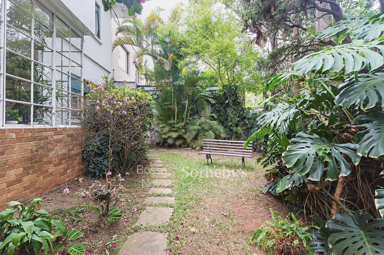 Inspirada na obra do arquiteto Gregori Ilych Warchavchik, esta casa no Jardim Europa preserva a essência do modernismo brasileiro em seu projeto original. Logo na entrada, um agradável jardim conduz ao hall com jardim de inverno. Em sequência, surgem os ambientes sociais compostos por sala de estar, living e sala de jantar, todos voltados para o jardim interno, mantendo a independência entre si. Nesse mesmo pavimento estão o lavabo e a cozinha, que se conecta ao espaço de convivência aberto, fazendo a ligação entre a casa principal e a edícula. A edícula abriga uma sala com lareira, instalada na antiga garagem coberta, além da área de serviço com lavanderia, dormitório e banheiro para funcionários. No piso superior, encontram-se três dormitórios amplos e um banheiro com acabamentos em mármore importado e banheira. A casa possui pé-direito alto, aterro acima do nível da rua e está situada em frente à guarita de segurança. Uma residência que une simplicidade e autenticidade, refletindo com fidelidade o espírito do modernismo brasileiro.