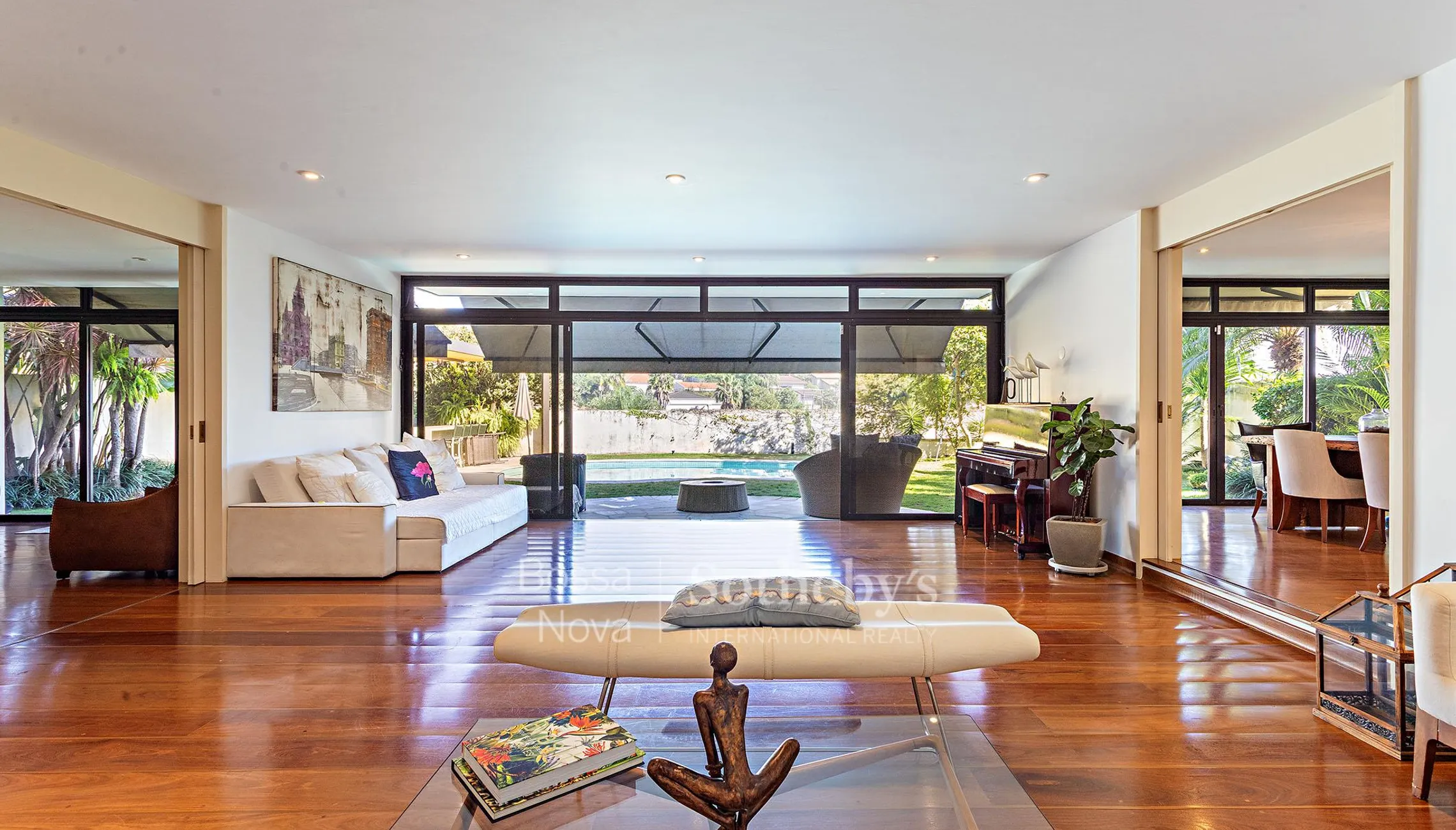 Casa reformada situada na parte arborizada e elevada do Jardim Guedala, oferecendo vista agradável e ambientes bem distribuídos. O hall de entrada com escadaria conduz à área íntima, enquanto o pavimento térreo abriga lavabo, ampla sala de TV com bar, living principal e sala de jantar voltados para o jardim com piscina e espaço gourmet. A sala de almoço e a cozinha são equipadas com armários planejados. No piso superior, o hall de distribuição se abre para um terraço e dá acesso às quatro suítes, sendo a principal com sala íntima e planta funcional. A localização em rua tranquila, cercada por áreas verdes, reforça a sensação de privacidade e conforto.
