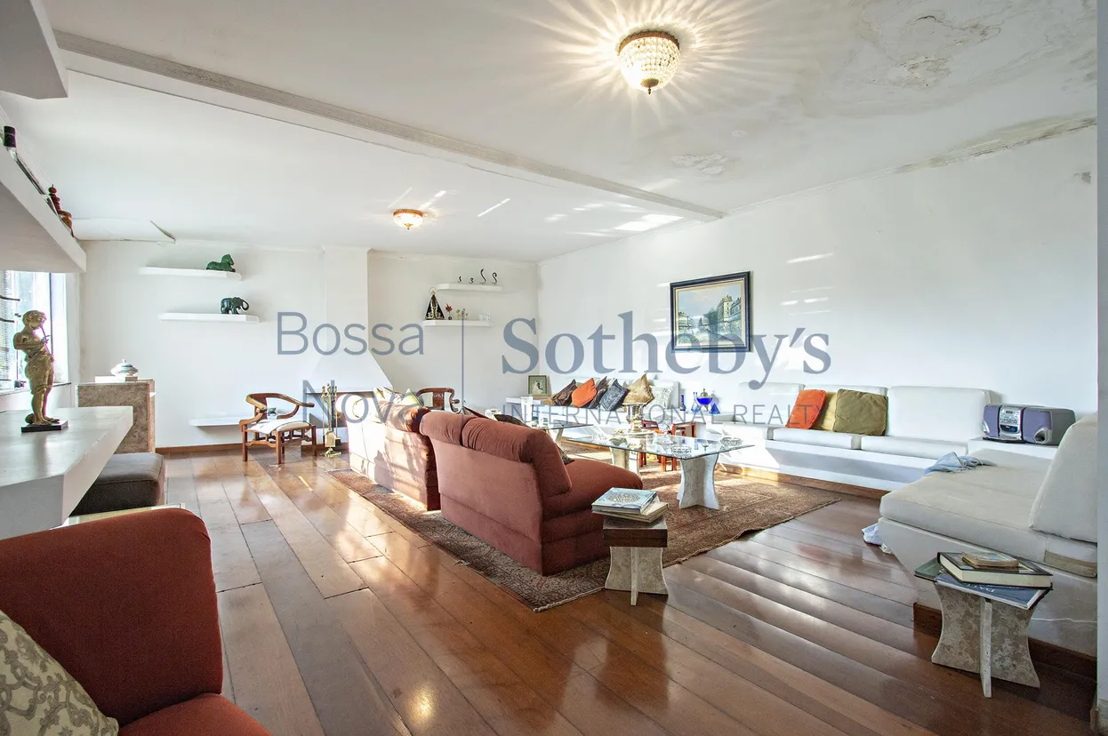 A casa é composta por living para três ambientes, sala de estar, sala de TV, sala de jantar e sala íntima integrada a uma espaçosa área de lazer com piscina, espaço gourmet e de jogos. Conta com ampla copa-cozinha. No piso superior, área íntima com com quatro dormitórios, todos suítes e varanda voltada para área de lazer.