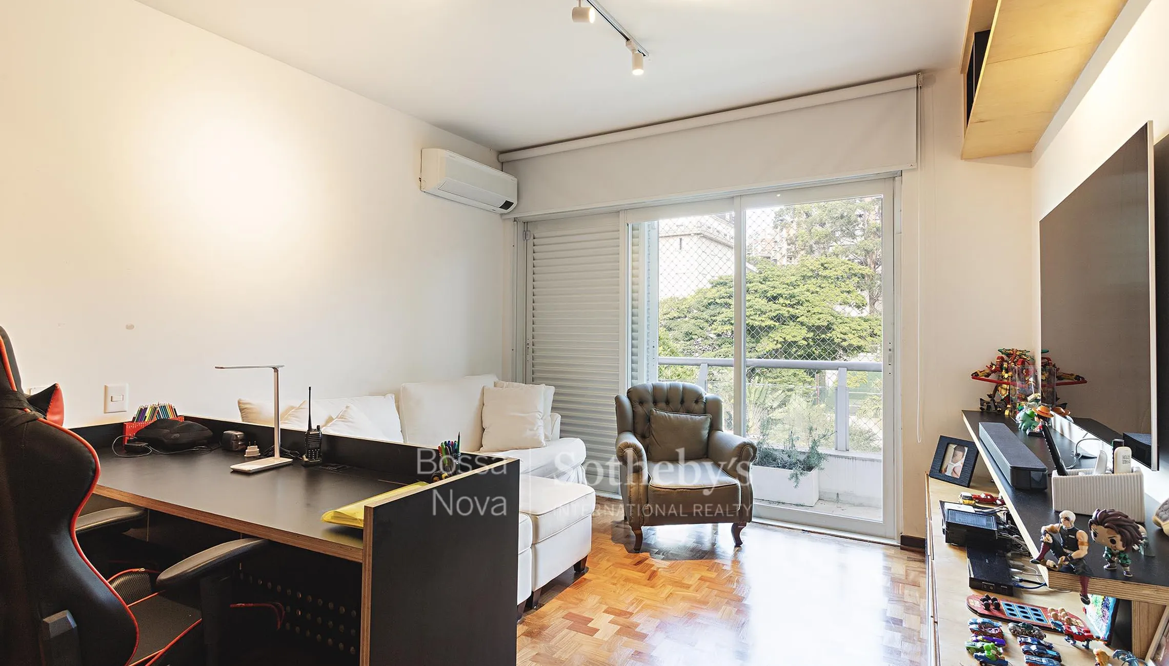 Residência localizada em rua silenciosa e arborizada, totalmente reformada e com projeto que valoriza a integração com o verde e a entrada de luz natural. O living possui pé-direito elevado e lareira em mármore, conectando-se a três ambientes, incluindo home theater e área gourmet, todos voltados para o jardim com árvores formadas, piscina e academia privativa. Os acabamentos incluem concreto aparente, mármore e metais Hansgrohe. No piso superior, com acesso por porta blindada, há quatro dormitórios com varanda e vista para o jardim, sendo duas suítes. A área íntima conta com piso em madeira, e a casa dispõe ainda de solarium, adega, escritório, cozinha com copa e jardim de inverno. A área de serviço é completa, com suíte para funcionários e banheiro para motorista. Todas as portas de acesso são blindadas, e o sistema de segurança utiliza tecnologia israelense.