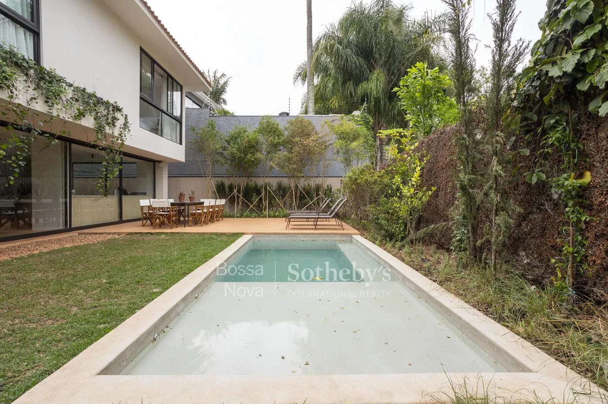 Casa nova com estilo contemporâneo, localizada em rua privilegiada do Jardim Guedala. Tem projeto arrojado que dispõe de living com lareira, sala de jantar, lavabo, copa e cozinha, além de sala de estar com lareira, cozinha gourmet completa e quarto de brinquedos. Na área externa encontra-se um amplo jardim com piscina e solarium. A área íntima conta com três suítes, sendo uma delas a suíte master com closet, mais um dormitório que pode ser usado como escritório. Os banheiros são espaçosos e arejados e toda marcenaria é de alta qualidade. Há, ainda, garagem para até quatro carros, área de serviço ventilada e dependências de funcionários. A casa dispõe de placas solares, sistema de segurança completo e área íntima blindada.