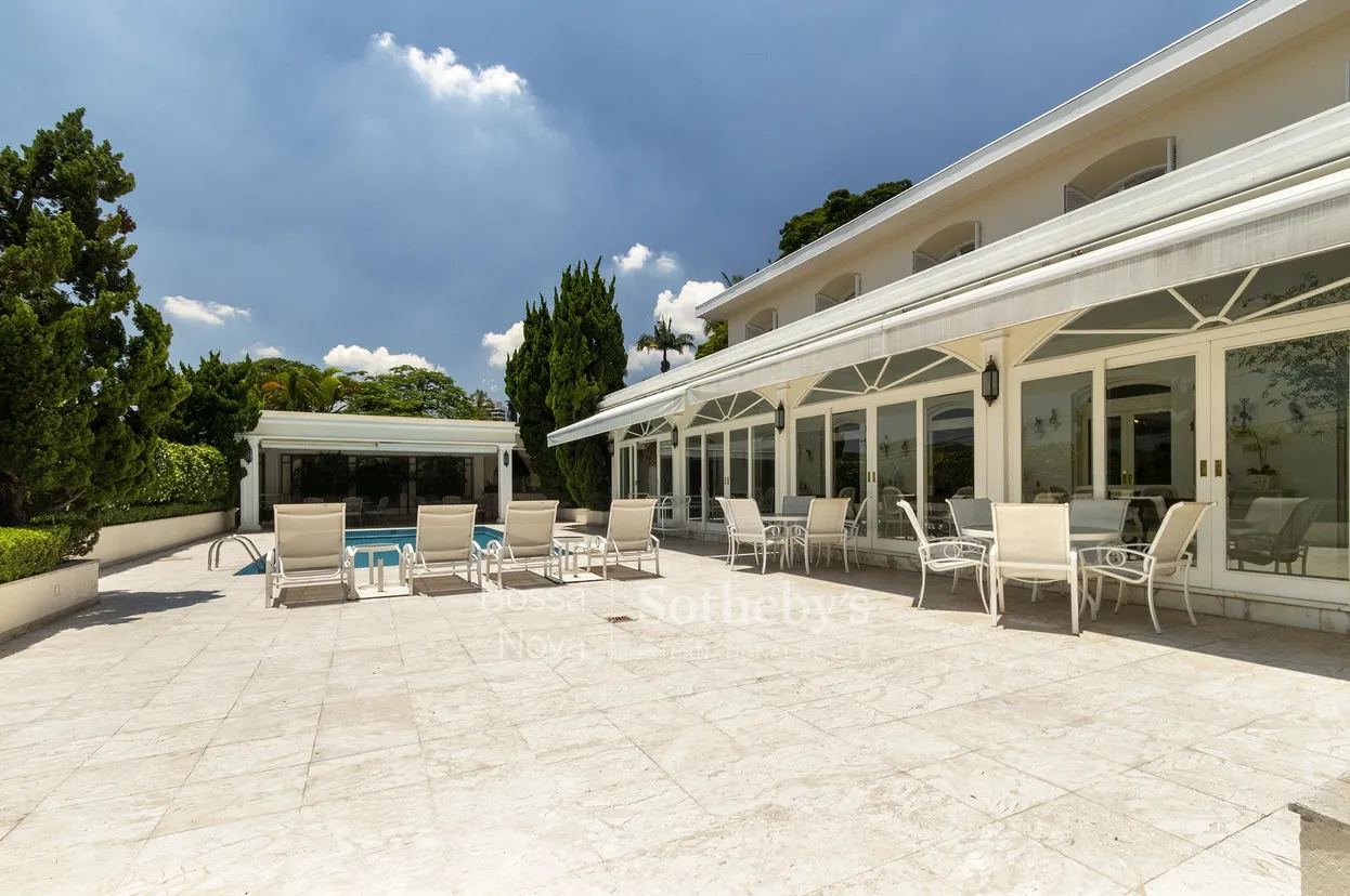 Uma casa de estilo clássico, com excelente área de lazer, jardins e árvores frutíferas. Possui acabamentos nobres, onde os ambientes são amplos e ao mesmo tempo acolhedores, voltados para o jardim. Um imponente hall de entrada nos leva para diversos ambientes. Sala de estar com vista para o verde, sala de jantar e um grande gazebo que se abre para o jardim. Possui uma bela piscina e espaço gourmet. Conta com uma espaçosa copa e cozinha. Na área íntima, dispõe de quatro dormitórios, sendo uma ampla suíte máster com closet. Conta com dependência de funcionários e lavanderia. São cinco vagas de garagem, com acesso para a casa via elevador.