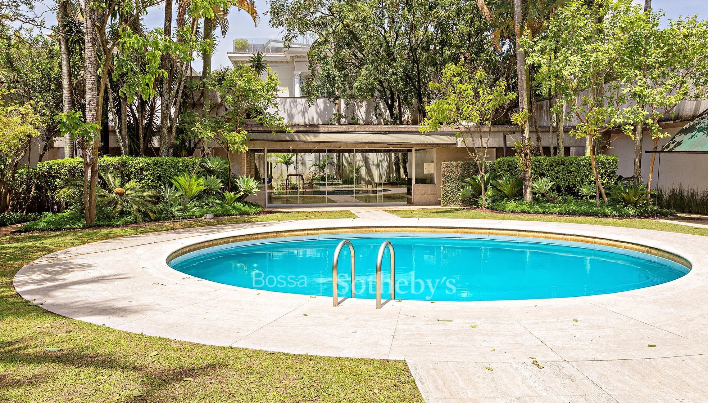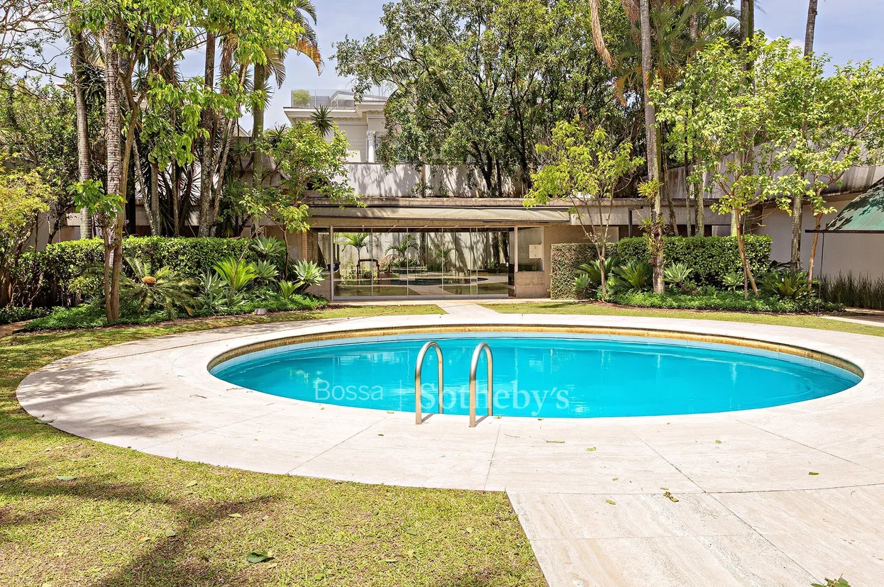 Residência contemporânea projetada por arquiteto de referência, implantada em terreno de grandes proporções e posicionada em frente a uma praça arborizada, com vista para o Parque Ibirapuera. O projeto arquitetônico prioriza integração entre os ambientes, com área social marcada por pé-direito elevado e conexão fluida entre os espaços internos e externos. O paisagismo, assinado por Burle Marx, valoriza espécies nativas e palmeiras, criando continuidade visual entre jardins internos e externos. A casa dispõe de infraestrutura completa, incluindo elevador, gerador, sistemas de climatização, cozinha profissional, áreas destinadas a lazer como piscina, salão de festas e sala de cinema, além de ambientes de apoio e circulação independente para serviços. A área íntima conta com cinco suítes bem dimensionadas, incluindo uma suíte principal com ambientes complementares que ampliam o uso privativo. Garagem com capacidade para diversos veículos completa o conjunto.
