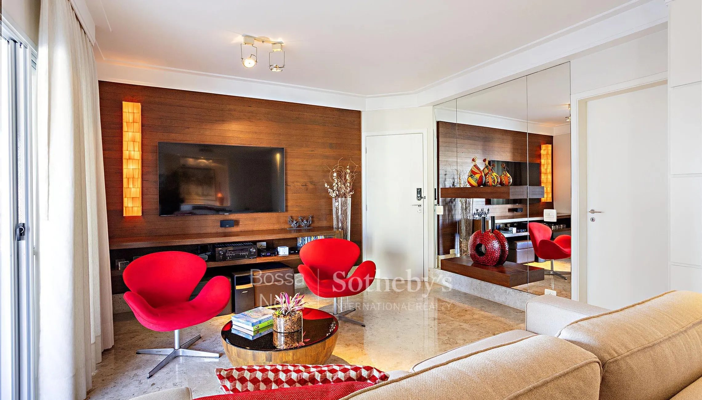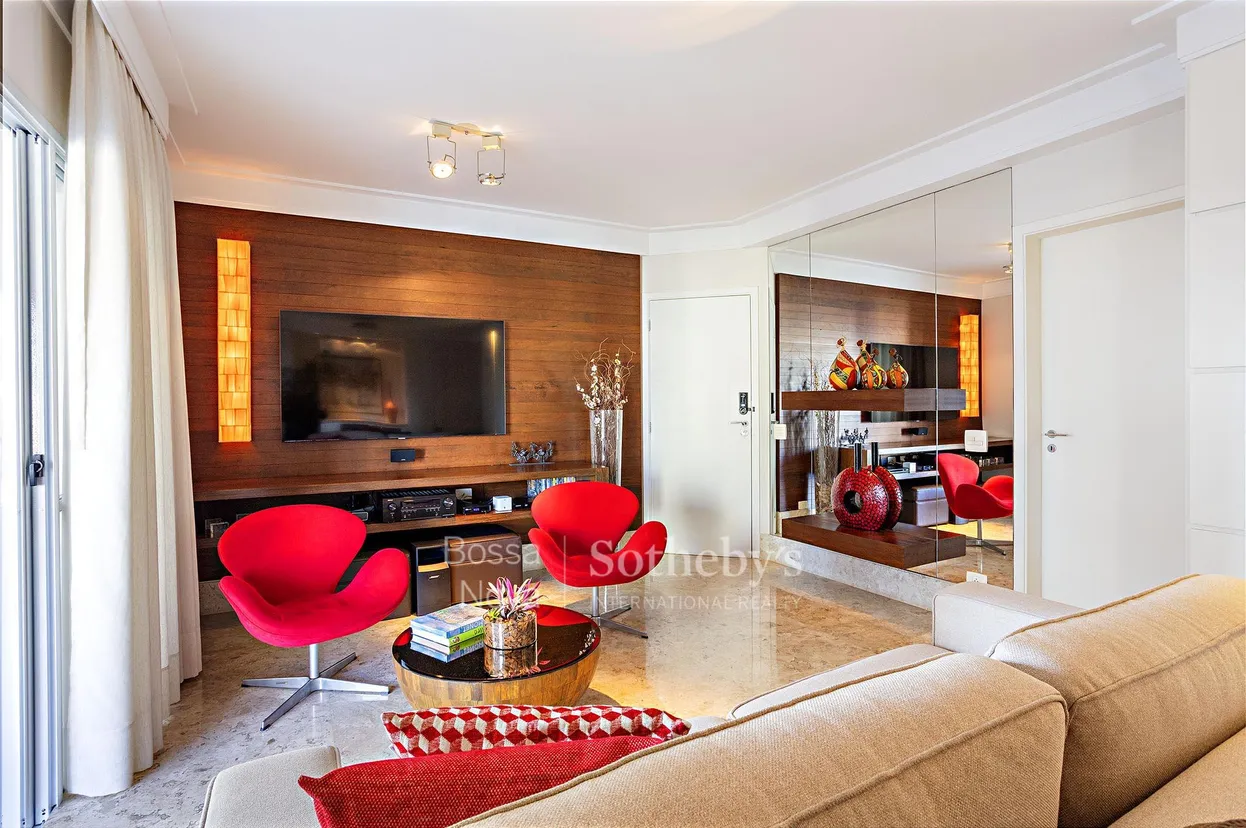 Este apartamento está localizado em um condomínio com lazer completo e excelente infraestrutura, próximo a estações de metrô, escolas, comércio e diversos serviços. A área social é composta por salas de estar, jantar e TV integradas a uma varanda gourmet com armários planejados e climatização, proporcionando um ambiente agradável e funcional. A cozinha conta com ilha central, marcenaria sob medida e eletrodomésticos embutidos, complementando o projeto contemporâneo. A área íntima dispõe de três dormitórios, sendo uma suíte com armários generosos e ar-condicionado. O piso em IndusParquet e o uso de mármore Athenee valorizam o acabamento e a estética dos espaços. O condomínio oferece lazer completo e dispõe de duas vagas de garagem escrituradas.