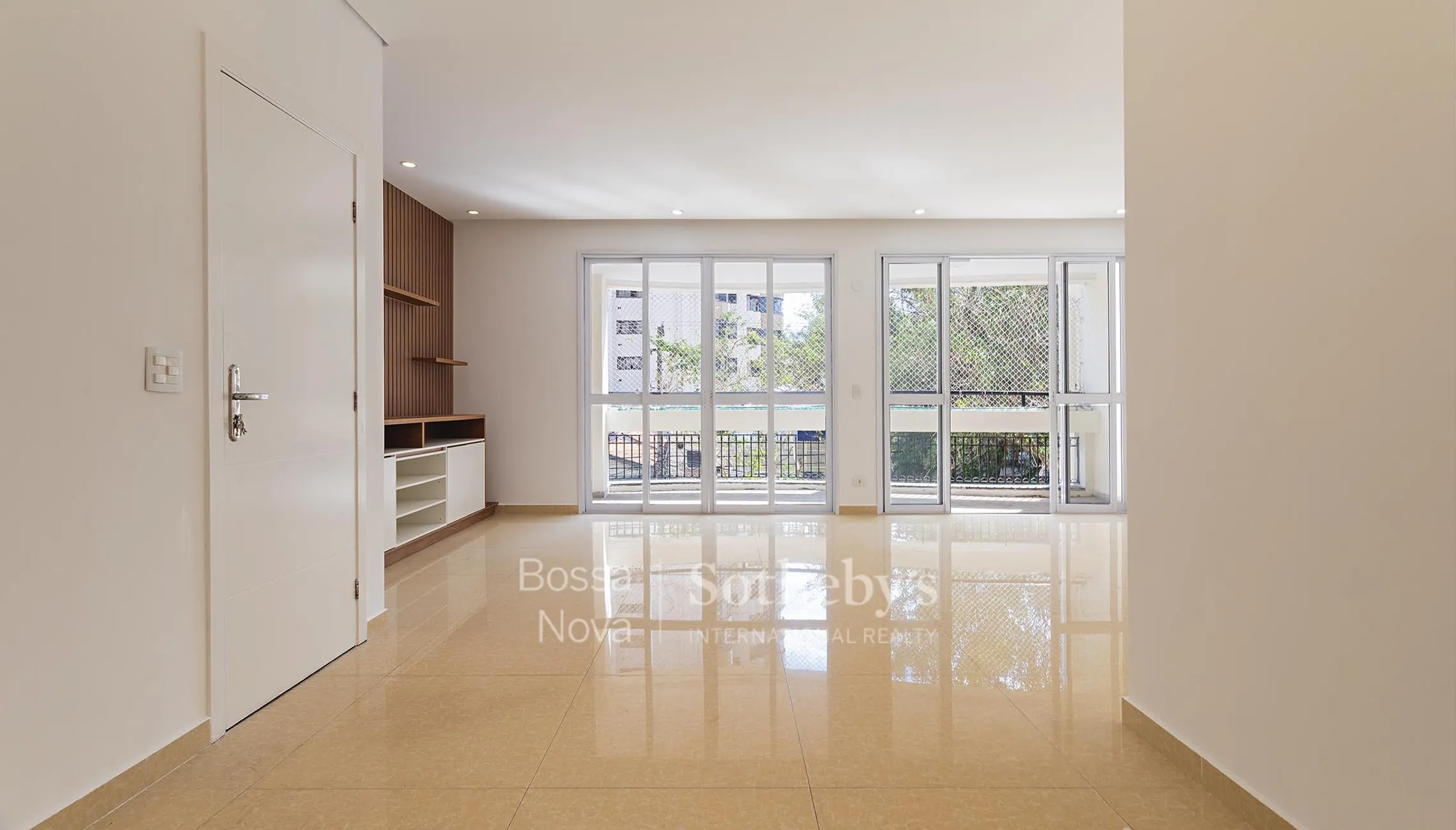 Localizado em Moema, fora da rota, este apartamento está pronto para uso e próximo a toda conveniência comercial, de lazer e serviços do bairro. Com 160 m² de área útil, apresenta planta bem distribuída, que privilegia a integração dos espaços. A área social conta com amplo living para três ambientes e varanda gourmet. A área íntima oferece quatro dormitórios, sendo duas suítes com sacada e armários planejados. Possui ainda lavabo, cozinha espaçosa, área de serviço e dependência de apoio. O piso em porcelanato está presente na cozinha, banheiros, sacadas e área de serviço, enquanto a área social e os dormitórios têm acabamento em madeira. São três vagas fixas de garagem. O edifício dispõe de lazer completo, com piscina adulto e infantil, área gourmet com churrasqueira, academia equipada e salão de festas.