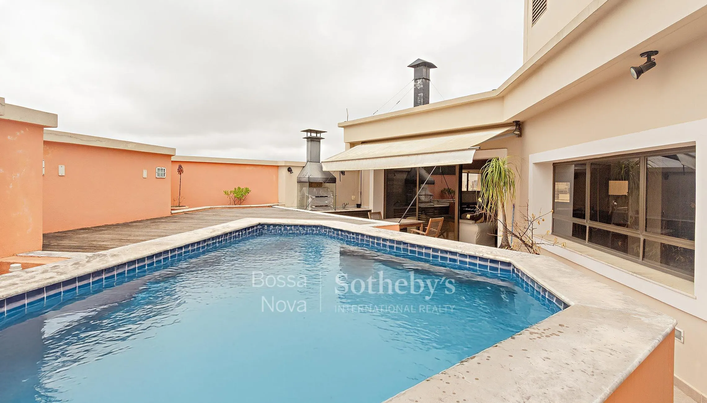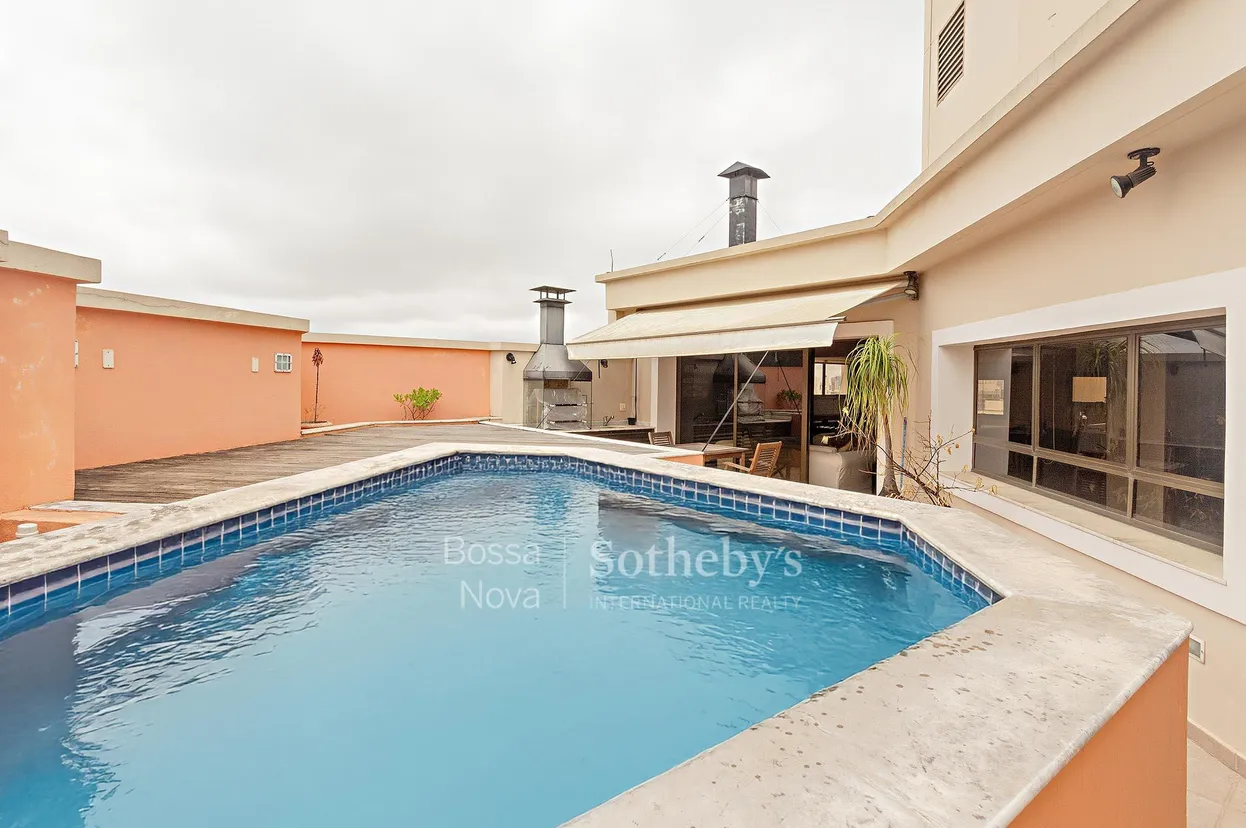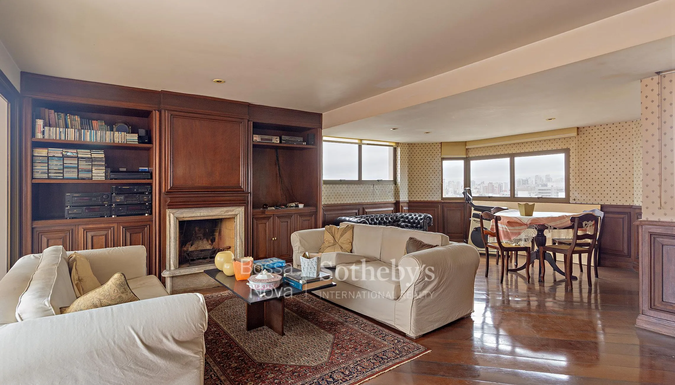 Cobertura com projeto que privilegia lazer e integração dos ambientes. No piso inferior, a área social conta com living amplo com sacada, sala de jantar, cozinha e dependência de serviços, além de duas suítes com ar-condicionado. No piso superior, há espaços generosos destinados à convivência, incluindo sala com lareira, escritório, bar e área gourmet com churrasqueira integrada a um terraço com piscina. O imóvel dispõe ainda de três vagas de garagem. Localizado em região com fácil acesso ao Parque Ibirapuera, próximo a restaurantes, comércio, escolas e ao Shopping Ibirapuera.