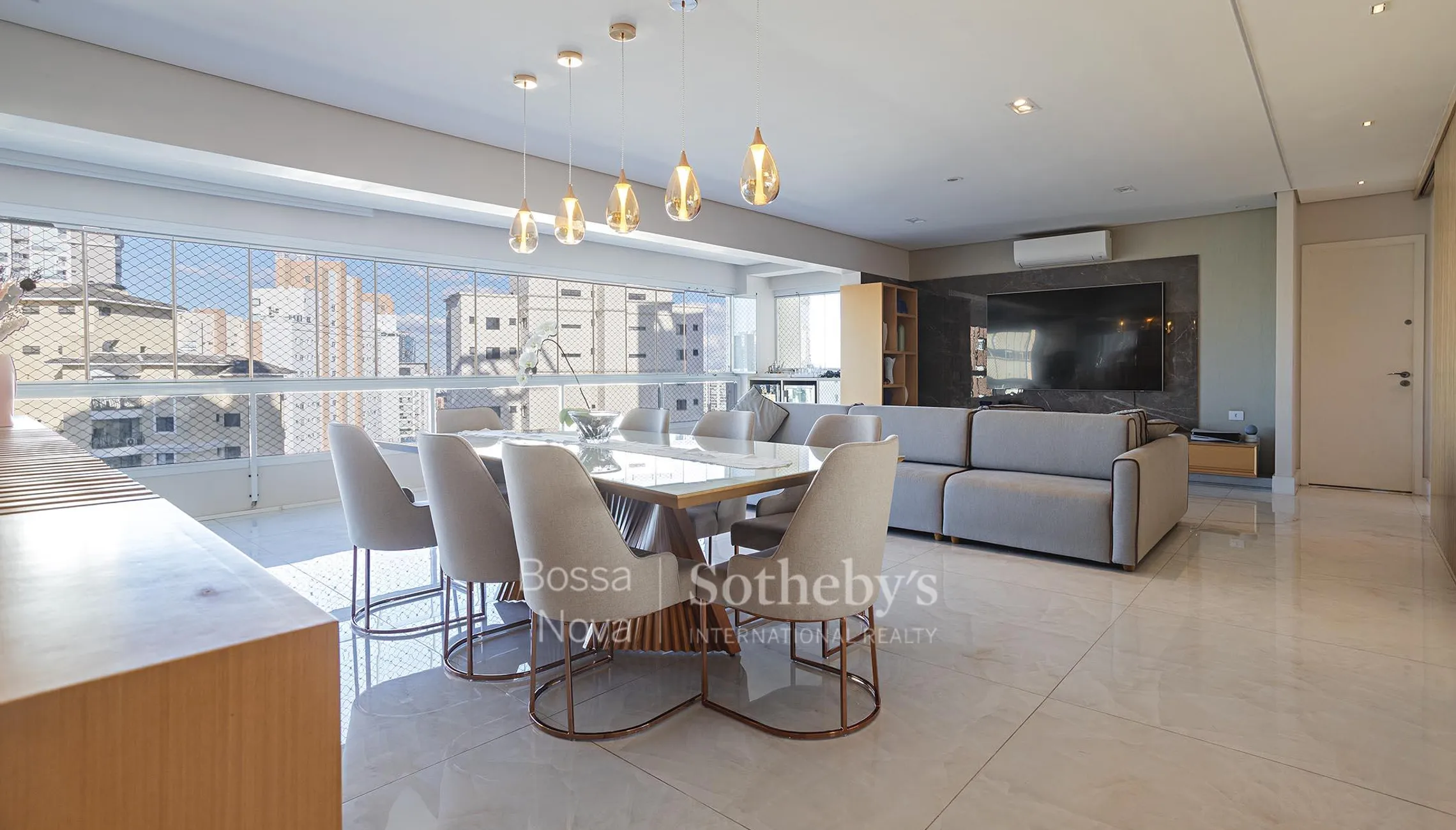Localizado próximo ao Shopping Jardim Sul, ao Parque Burle Marx e a diversas conveniências, este apartamento integra living, cozinha e varanda gourmet em ambiente amplo, com vista para a cidade. A reforma incorporou acabamentos como piso em porcelanato, madeira na área íntima, ar-condicionado, persianas automatizadas e infraestrutura para automação, além de marcenaria planejada que organiza a transição entre a cozinha e o living. A planta conta com três suítes, sendo a máster com closet criado a partir de um dormitório adicional e banheiro com hidromassagem, além de lavanderia com armário e dependência de funcionários. O condomínio oferece piscina aquecida, quadra de tênis, academia, salão de festas, bosque, gerador full, vagas para visitantes e depósito.
