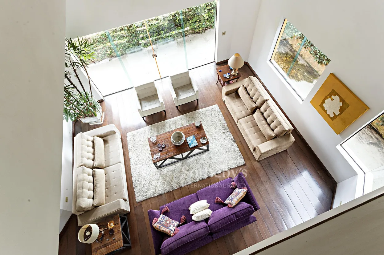 Em uma rua arborizada no Morumbi, esta residência possui planta funcional e ambientes amplos distribuídos em três níveis. No térreo, o living com pé-direito elevado oferece luminosidade natural e vista para o verde, além de lavabo, sala de almoço e cozinha equipada. No piso superior, estão quatro dormitórios, sendo duas suítes, incluindo a principal com closet, além de sala de TV com terraço. Três dormitórios possuem porta-balcão com acesso ao terraço. O acesso à área íntima é protegido por porta blindada. No pavimento inferior, a área externa integra jardim com piscina e gramado a um salão versátil, com estrutura para espaço gourmet, home theater ou sala de ginástica, além de banheiro de apoio e instalações para cozinha. A garagem acomoda até quatro veículos. Está próxima a escolas, clubes e comércios da região.