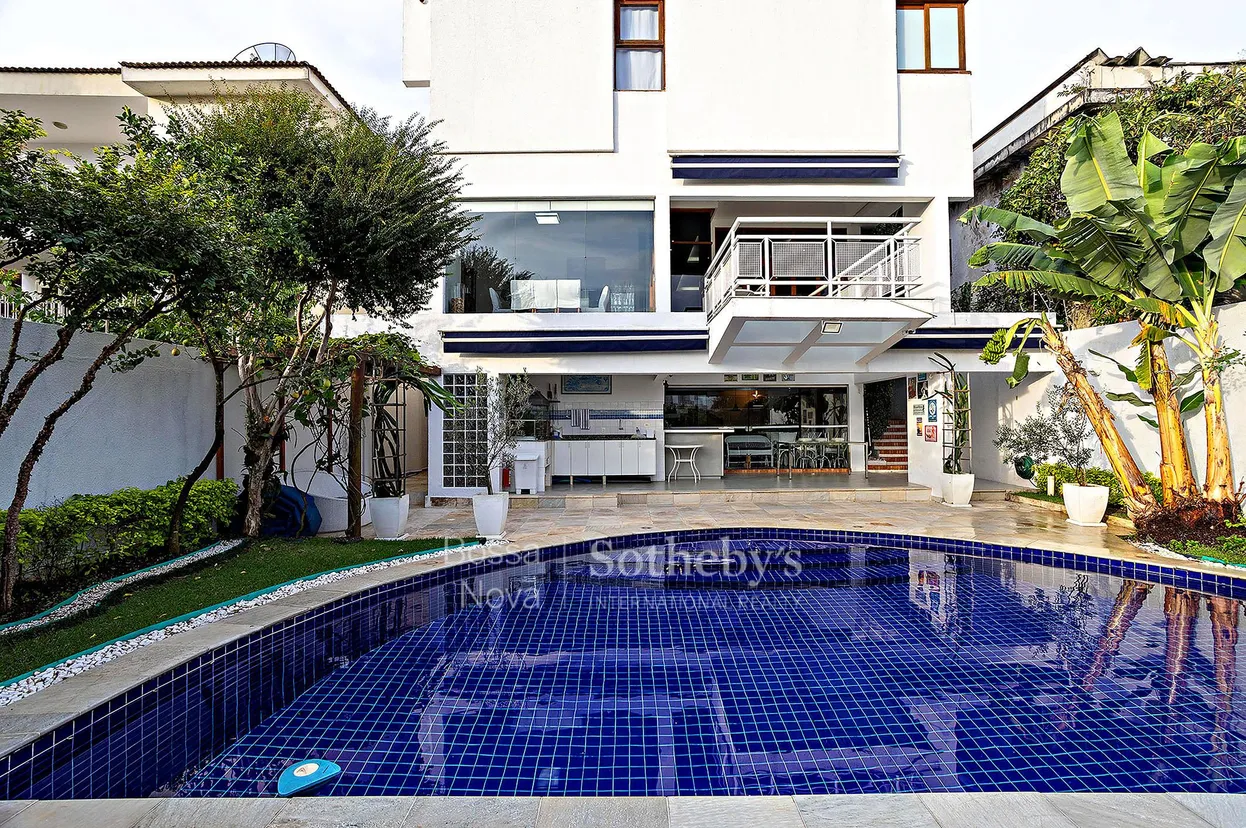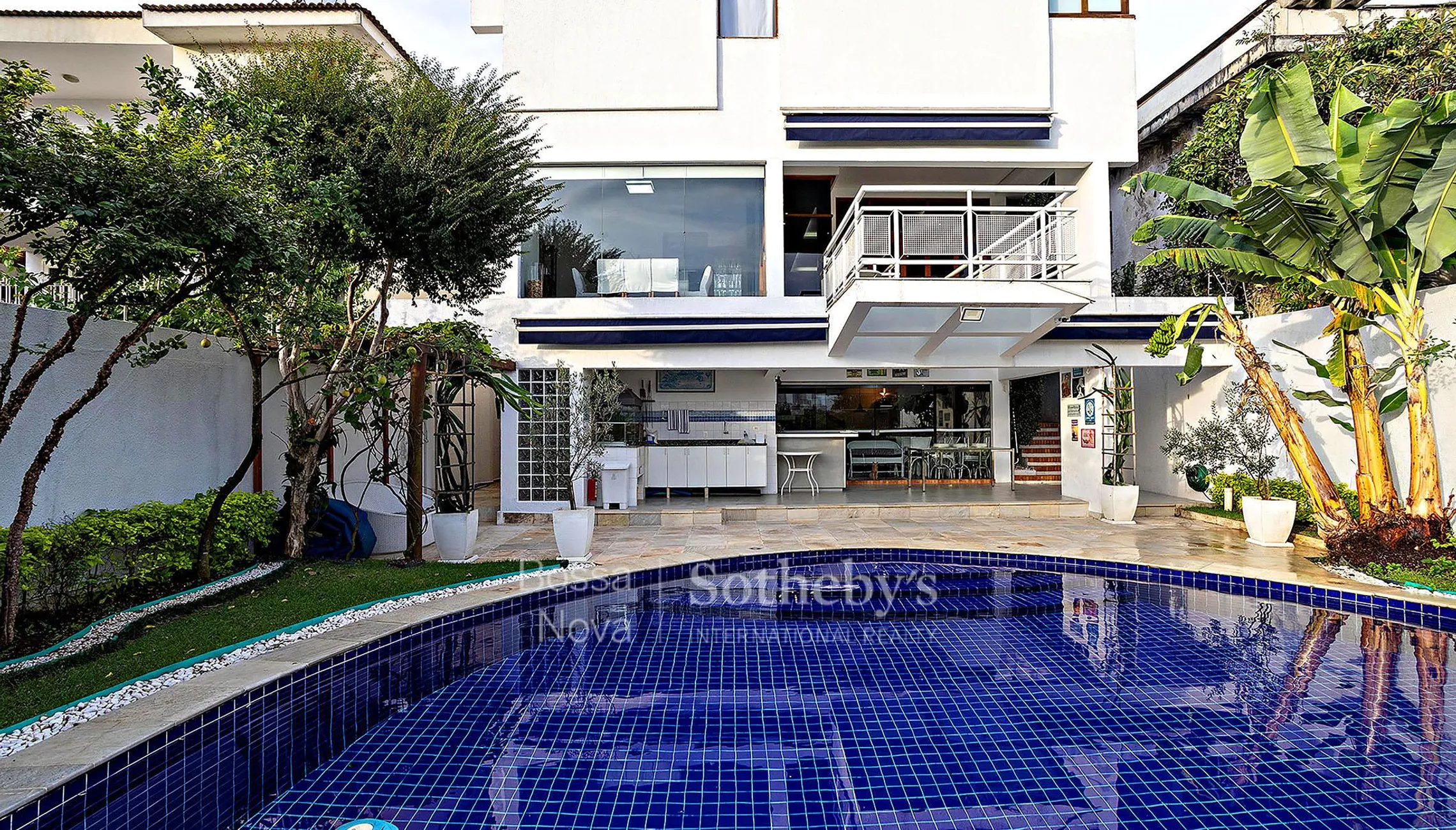 Casa localizada em rua tranquila, próxima às escolas renomadas da região. Totalmente conservada, com marcenaria de qualidade, vista aberta para a cidade, piscina aquecida e belo jardim com árvores frutíferas, são os principais diferenciais desta casa. O amplo living possui piso em tábua larga e acesso ao terraço com vista para a cidade. Além disso, há uma sala de jantar separada e uma sala de almoço. A área íntima conta com quatro suítes, todas com ar-condicionado, sendo a suíte master espaçosa, um home theater com lareira e um escritório com acesso ao terraço. No andar inferior, a casa oferece um amplo salão de festas que se abre para o jardim e piscina. Há também uma cozinha de apoio à piscina, dependência para funcionários e uma suíte para hóspedes. Vagas para seis carros, sendo três cobertas.