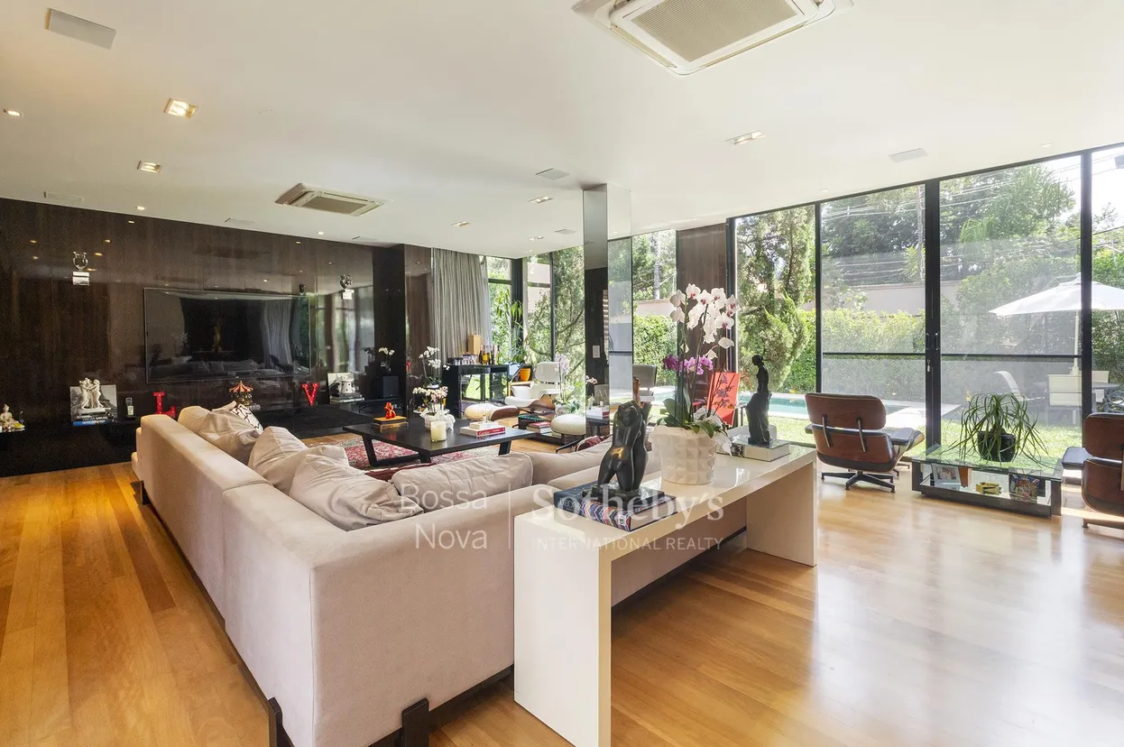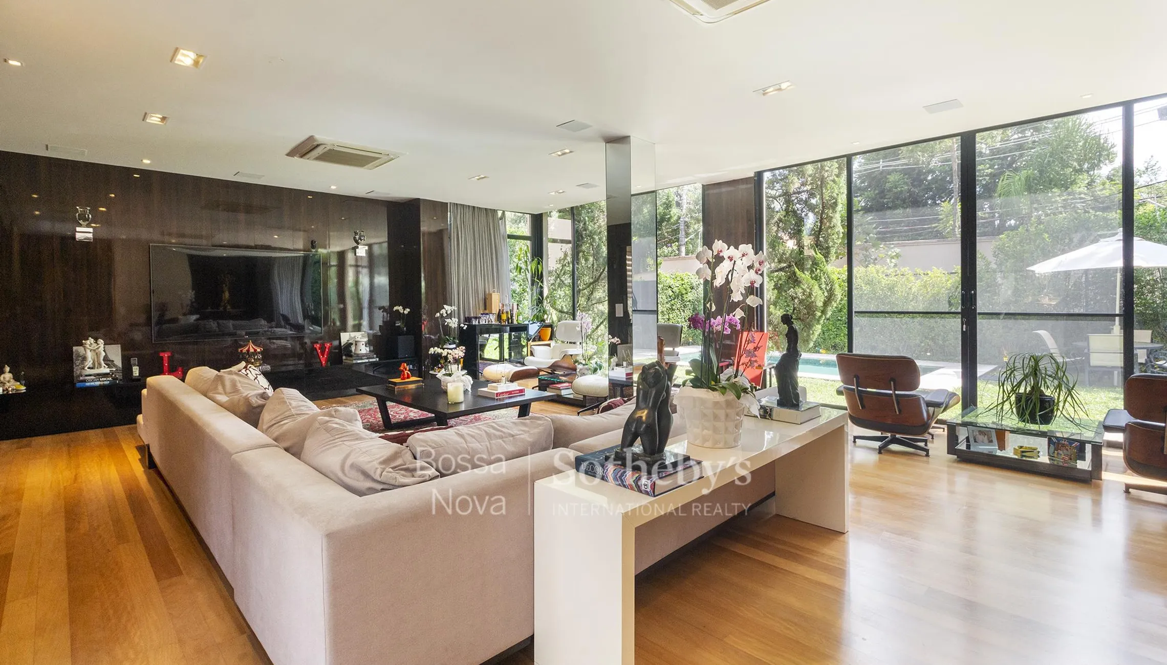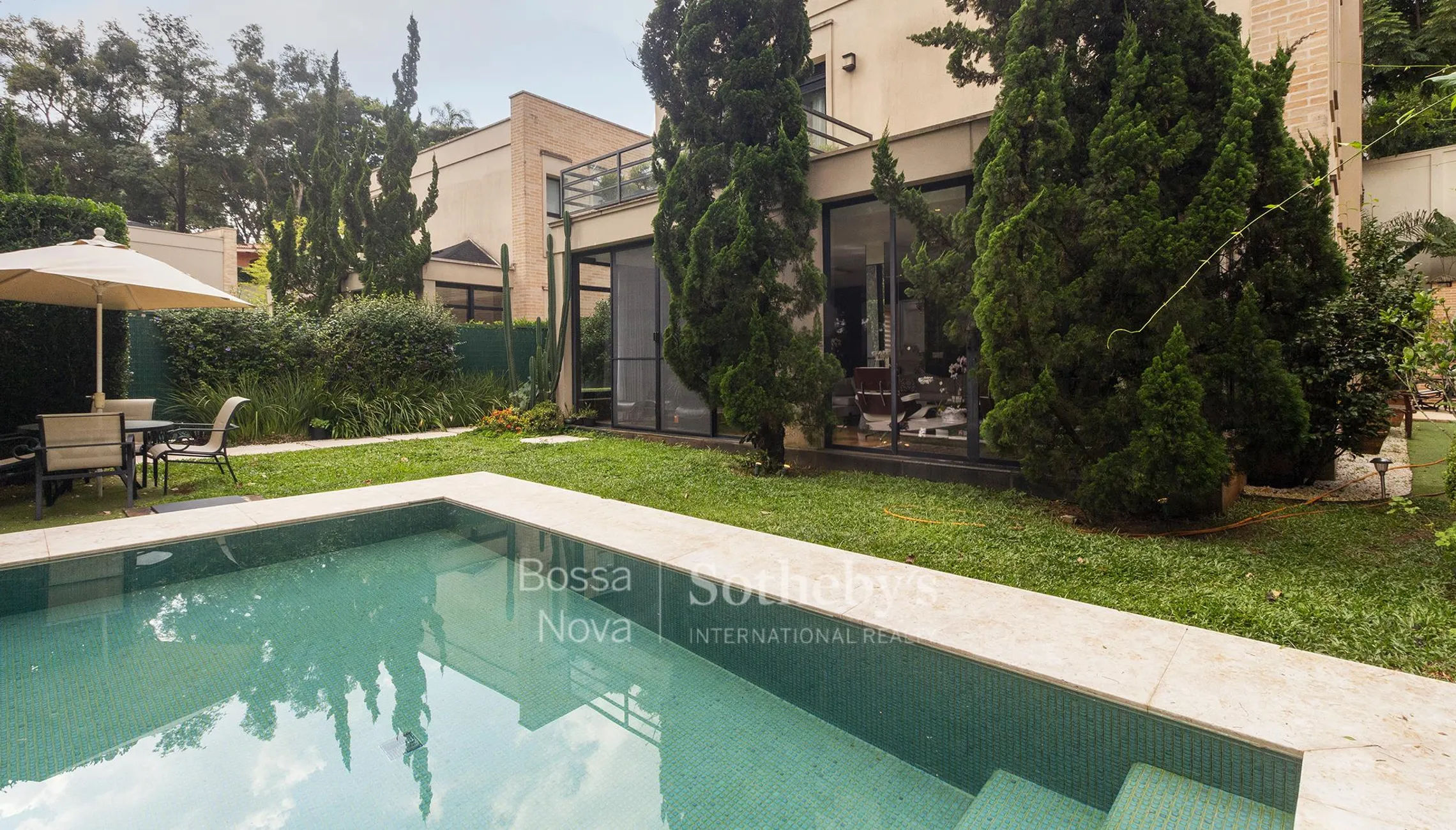 Casa em condomínio fechado com segurança, próxima ao Palácio do Governo e com fácil acesso à Avenida Morumbi. Reformada com bom gosto e acabamentos de qualidade, possui três pisos, elevador, ar-condicionado em todos os ambientes, automação de luz e som embutido. O hall de entrada conta com pé-direito duplo e piso em mármore. A ampla sala de estar, com piso em madeira, integra-se ao jardim e à piscina climatizada, que também dispõe de forno de pizza e churrasqueira. A sala de jantar apresenta piso em mármore, e a cozinha é planejada com despensa. A área íntima oferece três suítes com banheiros em mármore, sendo a suíte master equipada com varanda, dois closets e banheiros senhor e senhora, resultantes da integração de duas suítes, com possibilidade de reversão para quatro suítes. A casa conta ainda com dependência para funcionária, seis vagas de garagem e depósito.