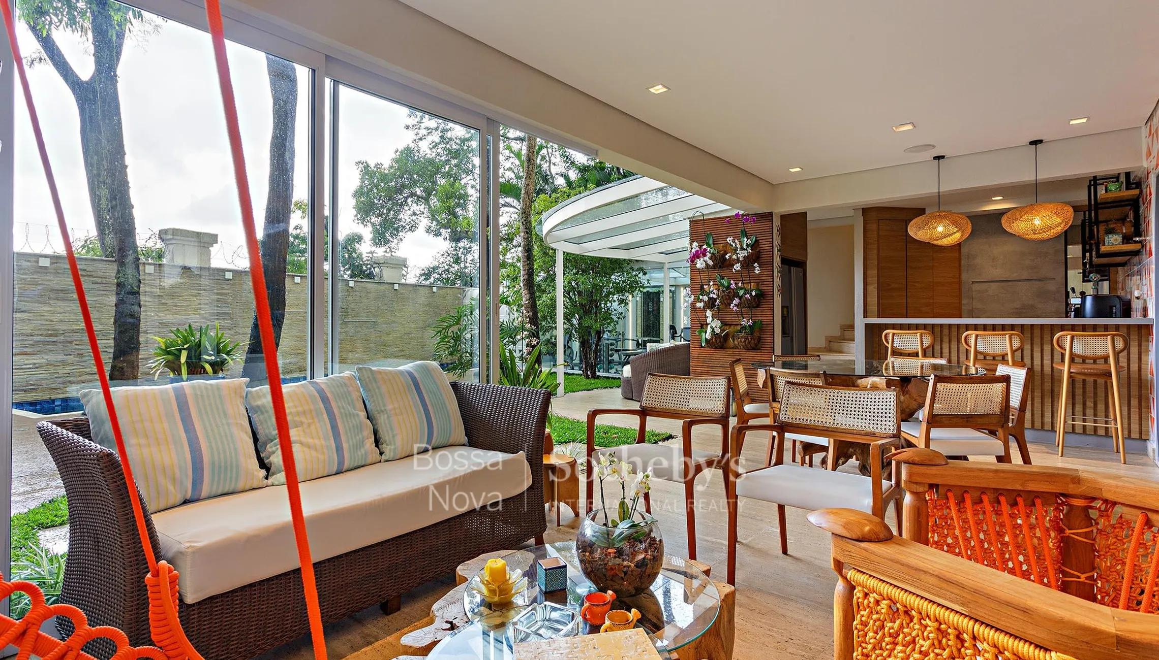 Residência impecavelmente planejada em condomínio com segurança especializada, localizada nas imediações dos colégios mais renomados da região. Totalmente reformada, conta com acabamentos de alta qualidade e um projeto que combina conforto, sofisticação e funcionalidade. A marcenaria sob medida e o ar-condicionado presente na maioria dos ambientes reforçam o cuidado com cada detalhe. A área social oferece três salas de TV, sala de almoço e living para três ambientes com lareira, todos voltados para o verde. A sala de estar se conecta à área externa, que contempla piscina aquecida, espaço fitness com equipamentos de última geração (que permanecem na venda), sauna e adega. A cozinha possui armários Ornare e acesso direto à dependência de funcionária, com entrada independente. A área íntima é composta por três suítes, sendo uma delas com acesso a um sótão espaçoso. A suíte principal impressiona com dois closets, dois banheiros, escritório e um amplo spa envidraçado com hidromassagem e vista deslumbrante para a natureza. A casa será vendida com diversos móveis de grife, reforçando o padrão elevado de acabamento e decoração.