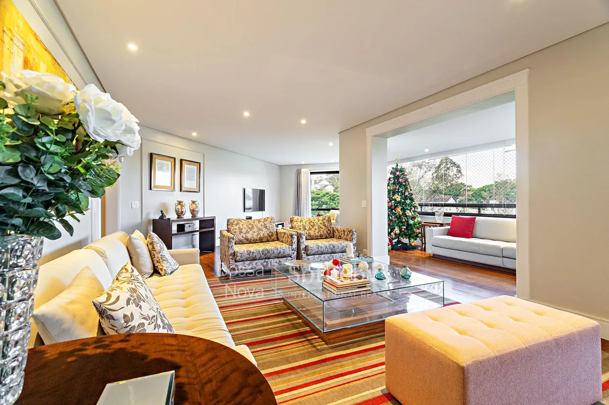 Este apartamento destaca-se pela planta generosa, privacidade e pela integração com a natureza do entorno. O living oferece salas de estar, jantar e home theater, compondo um ambiente amplo e bem distribuído, conectado ao hall privativo e à cozinha com sala de almoço. A área íntima conta com três suítes, sendo a principal com duas áreas de banho, além de circulação confortável e iluminação natural. A vista voltada para o parque privativo do condomínio cria uma atmosfera serena, enquanto a localização oferece acesso conveniente a comércios, escolas, parques e vias importantes da região, reunindo conforto e praticidade em um endereço valorizado.