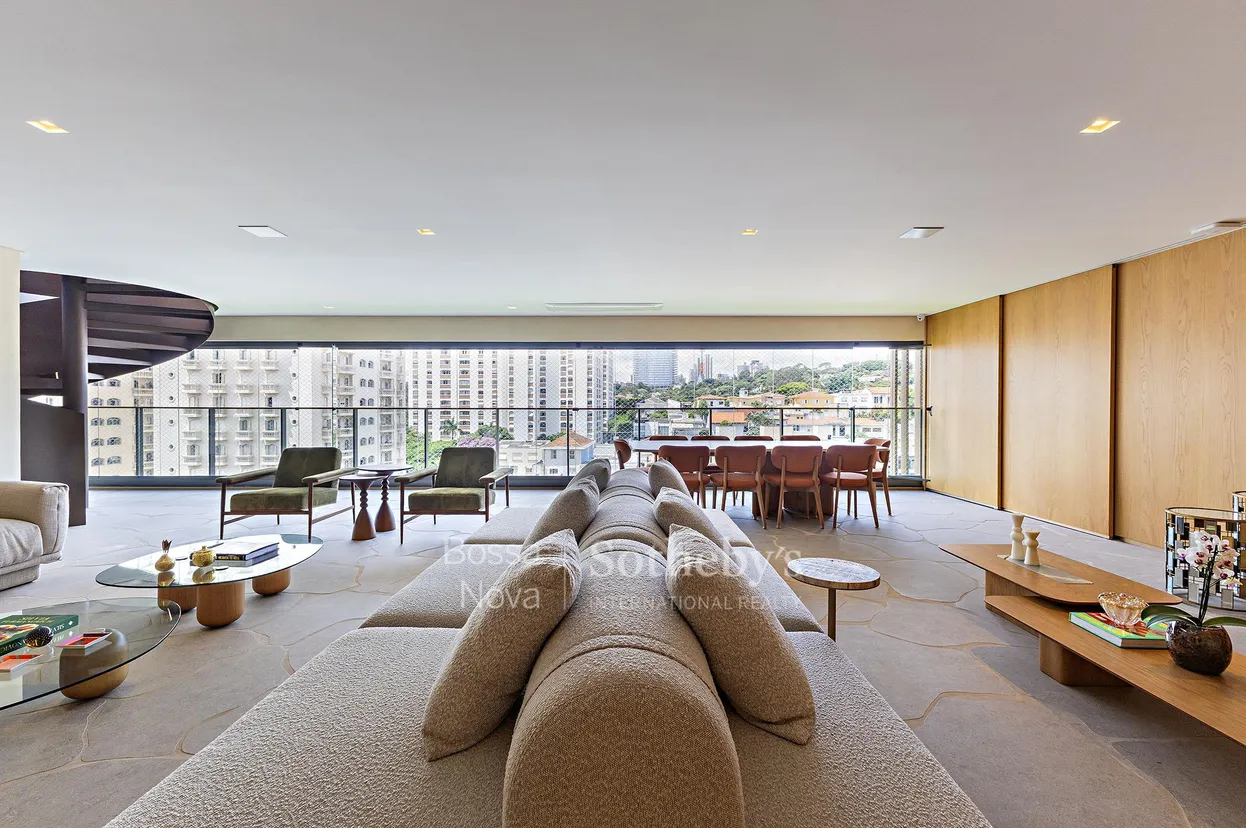 Cobertura duplex localizada em empreendimento recente, em região próxima à Avenida Sumaré, com fácil acesso a praça, ciclovia, padaria e restaurantes do entorno. O imóvel apresenta planta distribuída em dois pavimentos, sendo o primeiro destinado à área íntima, composta por quatro suítes, incluindo a suíte principal com closet, além de sala íntima e áreas funcionais do dia a dia. O pavimento superior foi concebido como espaço flexível, permitindo personalização conforme diferentes projetos e necessidades de uso. A unidade conta com quatro vagas de garagem, vagas destinadas a visitantes e dependência completa de funcionários. O edifício oferece infraestrutura de lazer completa.