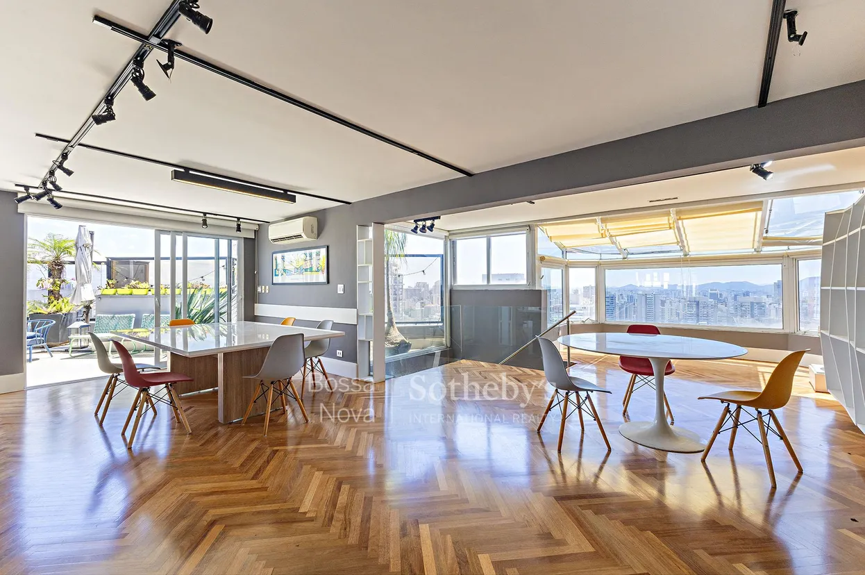 Esta cobertura triplex reformada em Perdizes combina conforto, design e uma vista panorâmica de aproximadamente 290° da cidade de São Paulo. O projeto foi totalmente renovado e apresenta acabamentos refinados, com marcenaria planejada em todos os ambientes e duas cozinhas, sendo uma delas gourmet. A área social é marcada por um living iluminado com amplas janelas, cozinha integrada e uma suíte principal com closet espaçoso. No pavimento intermediário, um ambiente dedicado ao lazer reúne espaço para home theater, jantar e bar, além de uma área externa ideal para receber convidados. No nível superior, o mirante privativo oferece um deck com jacuzzi e vista ininterrupta para o skyline da cidade. O imóvel conta com projeto de iluminação contemporâneo, piso em madeira Tauari em padrão escama de peixe, portas acústicas com fechadura digital, ar-condicionado em todos os cômodos e persianas em tecido. O edifício está localizado em área privilegiada de Perdizes, próximo à PUC-SP, à futura estação de metrô e a renomadas instituições de ensino, com três vagas de garagem demarcadas.