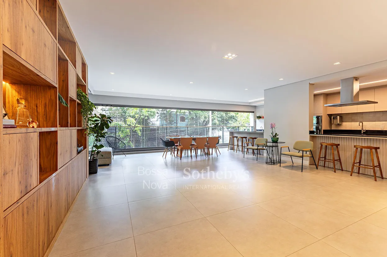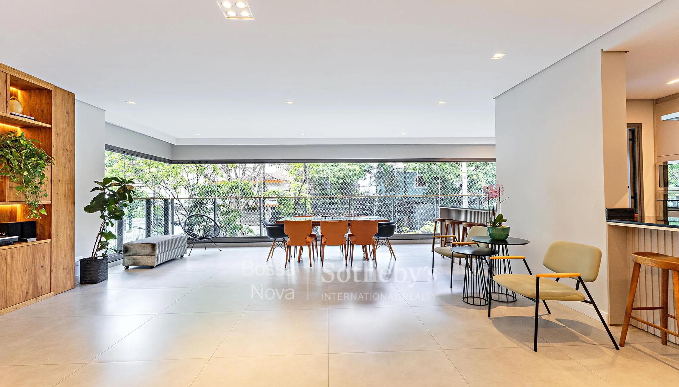 Apartamento contemporâneo em frente à praça com vista das copas das árvores