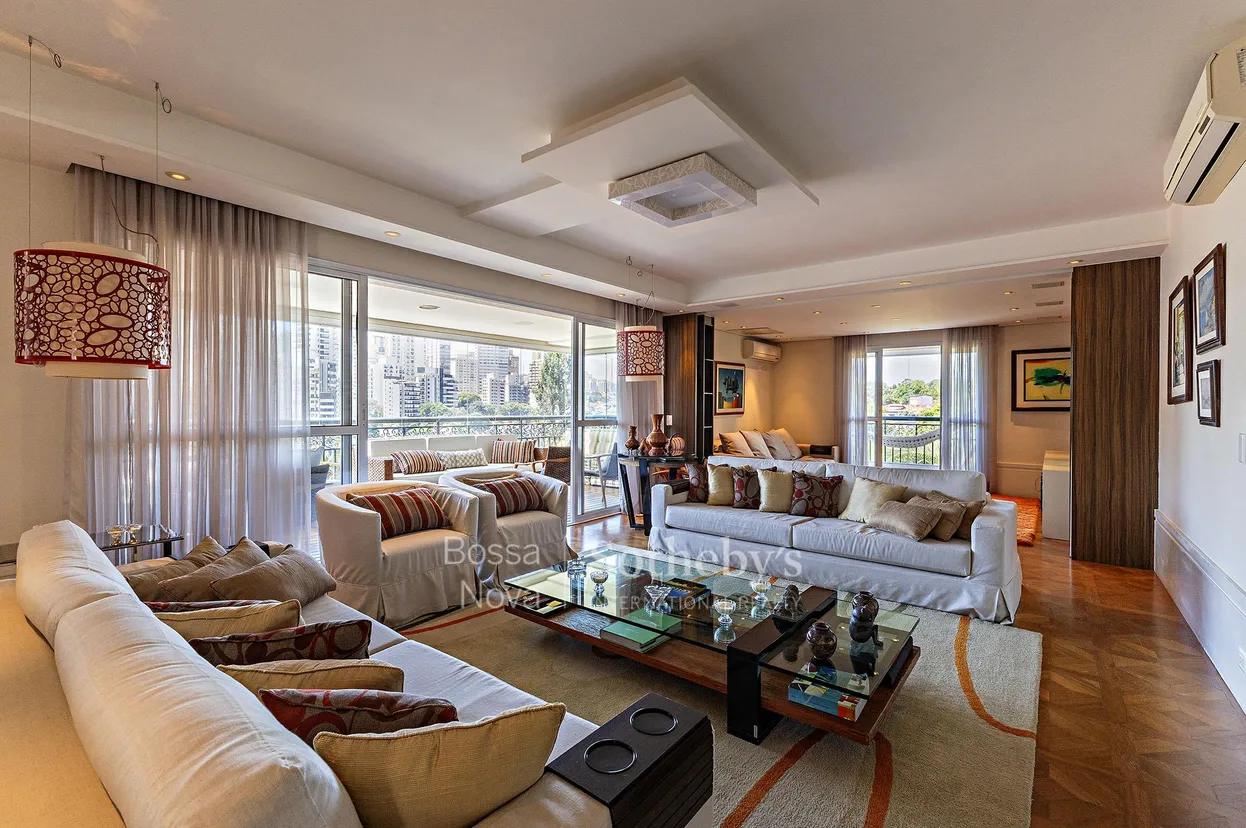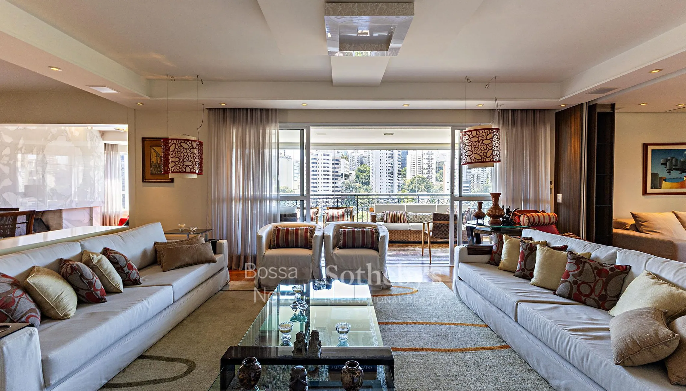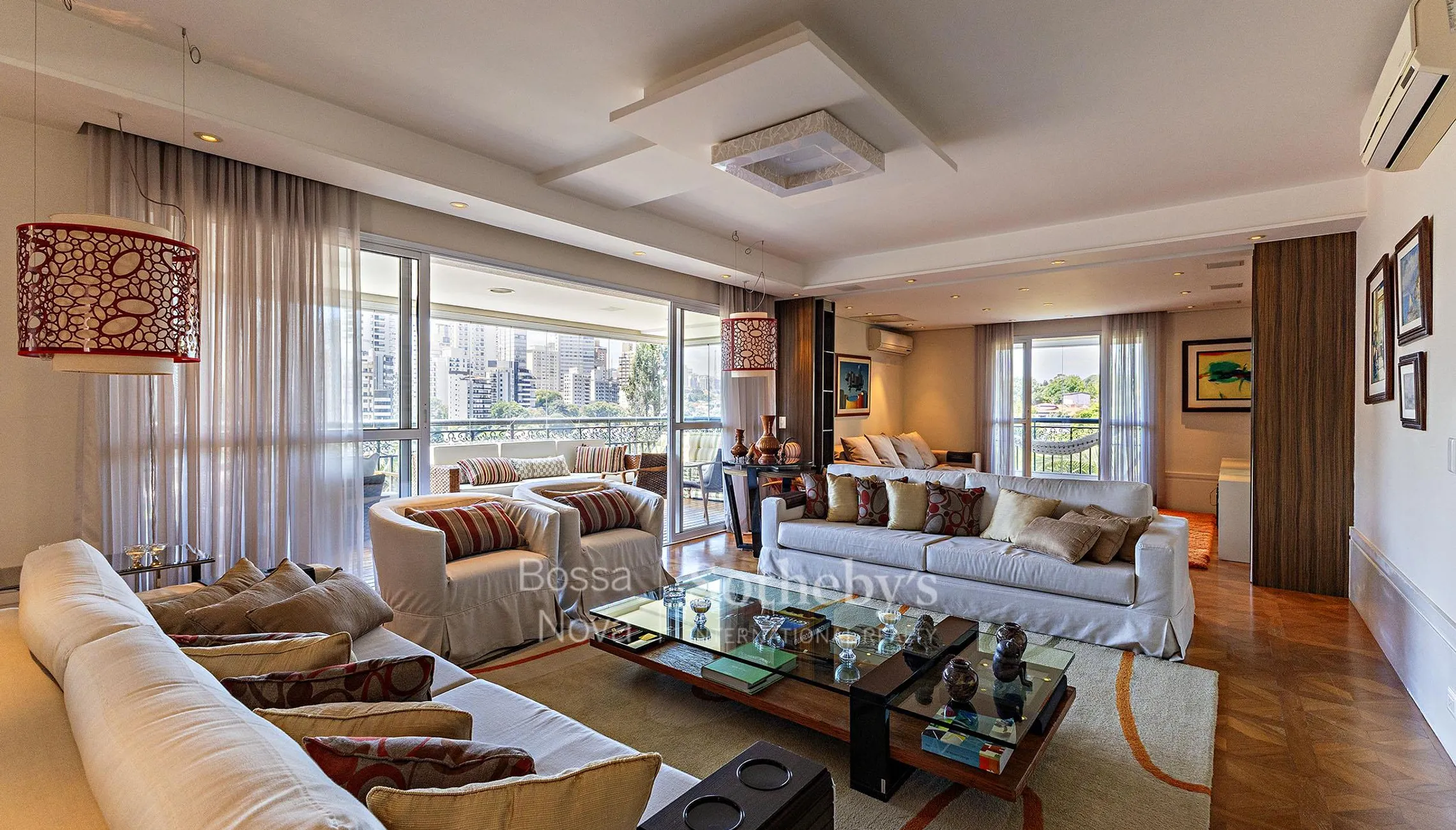 Localizado em rua arborizada de Perdizes, próximo aos serviços do bairro, ao Parque da Água Branca e ao metrô, este apartamento está em edifício assinado por Israel Rewin com paisagismo de Benedito Abbud e oferece vista aberta para o Vale do Pacaembu. A área social é composta por uma sala de lareira envidraçada integrada ao living e à sala de jantar, além de home theatre, com todos os ambientes voltados para o terraço em L que valoriza o verde ao redor. A cozinha planejada integra-se à copa e conecta-se à lavanderia ampla com dois quartos de serviço. A área íntima dispõe de quatro suítes, sendo a principal com walk-in closet e banheiro com hidromassagem. O condomínio conta com piscina, academia e áreas de lazer cuidadas.