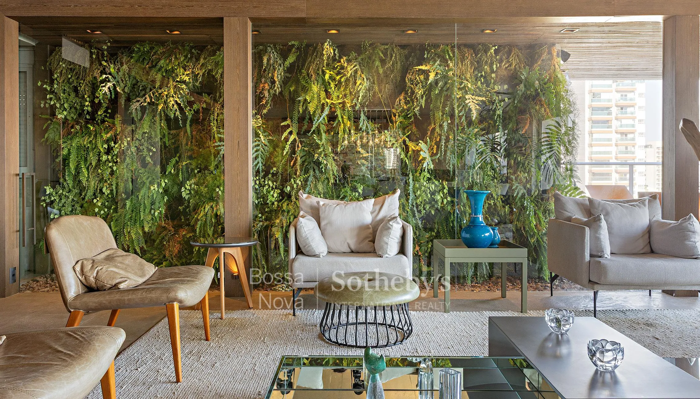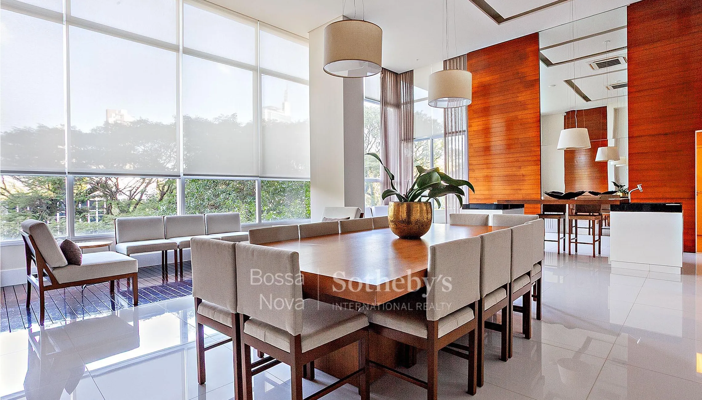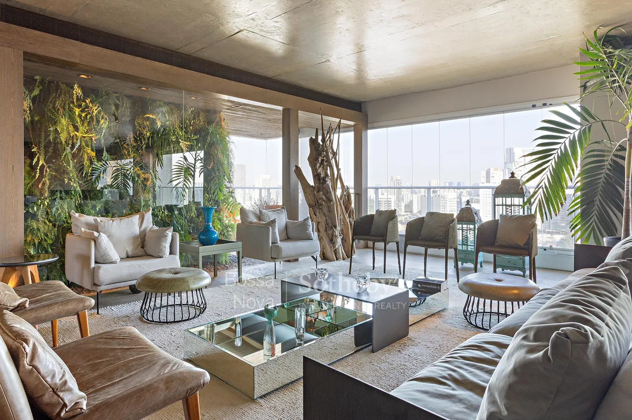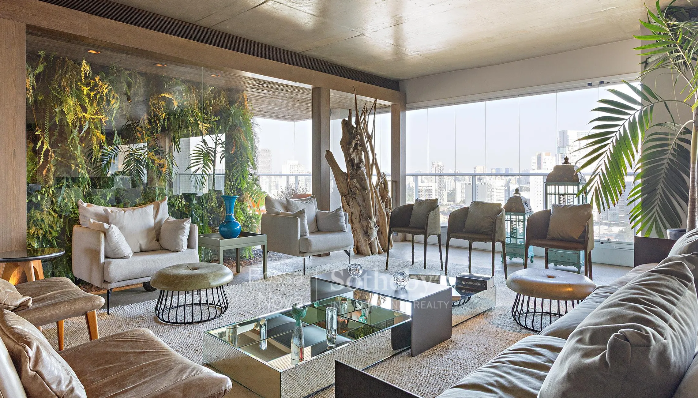 Em Pinheiros, este apartamento em andar alto foi projetado com acabamentos refinados e mobiliário completo. A área social dispõe de amplo living para três ambientes integrado à varanda gourmet, onde se destaca uma parede verde com paisagismo e vista para o pôr do sol. O projeto conta com piso de limestone e automação Pulsar, garantindo conforto e sofisticação aos ambientes. A área íntima inclui home theater e suíte master com walk-in closet e banheiro Sr. e Sra. A marcenaria Segatto complementa o projeto com funcionalidade e elegância. O condomínio oferece lazer completo, com piscina de raia e academia, assegurando praticidade e bem-estar aos moradores.