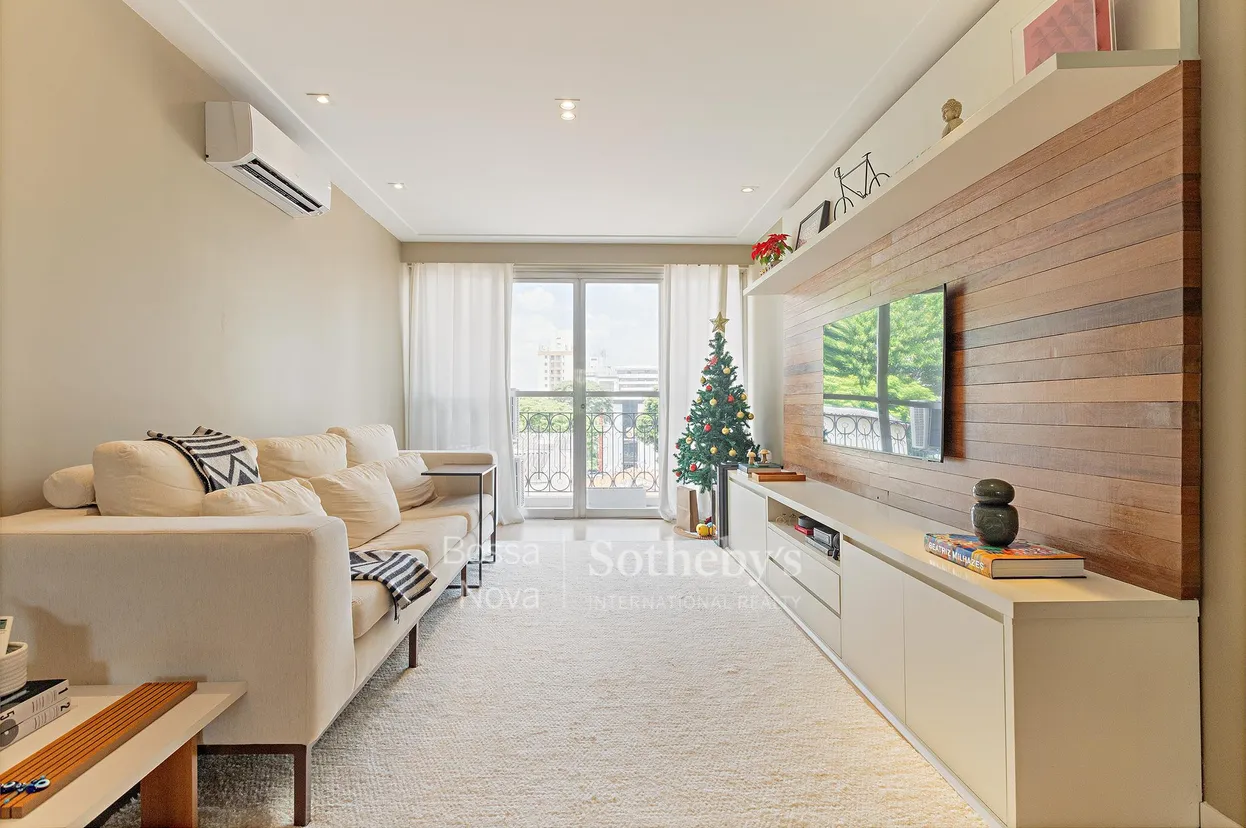Reformado e mobiliado, este apartamento está localizado em rua tranquila do bairro e apresenta ambientes com boa entrada de luz natural, área social composta por living com terraço e cozinha integrada que organiza a circulação de maneira funcional. A planta conta com dois dormitórios e uma antessala que pode servir como sala de apoio, além de área de serviço com dependência para empregada, contribuindo para a organização do cotidiano. O conjunto resulta em um imóvel prático em região com acesso a conveniências, áreas verdes e serviços do bairro.