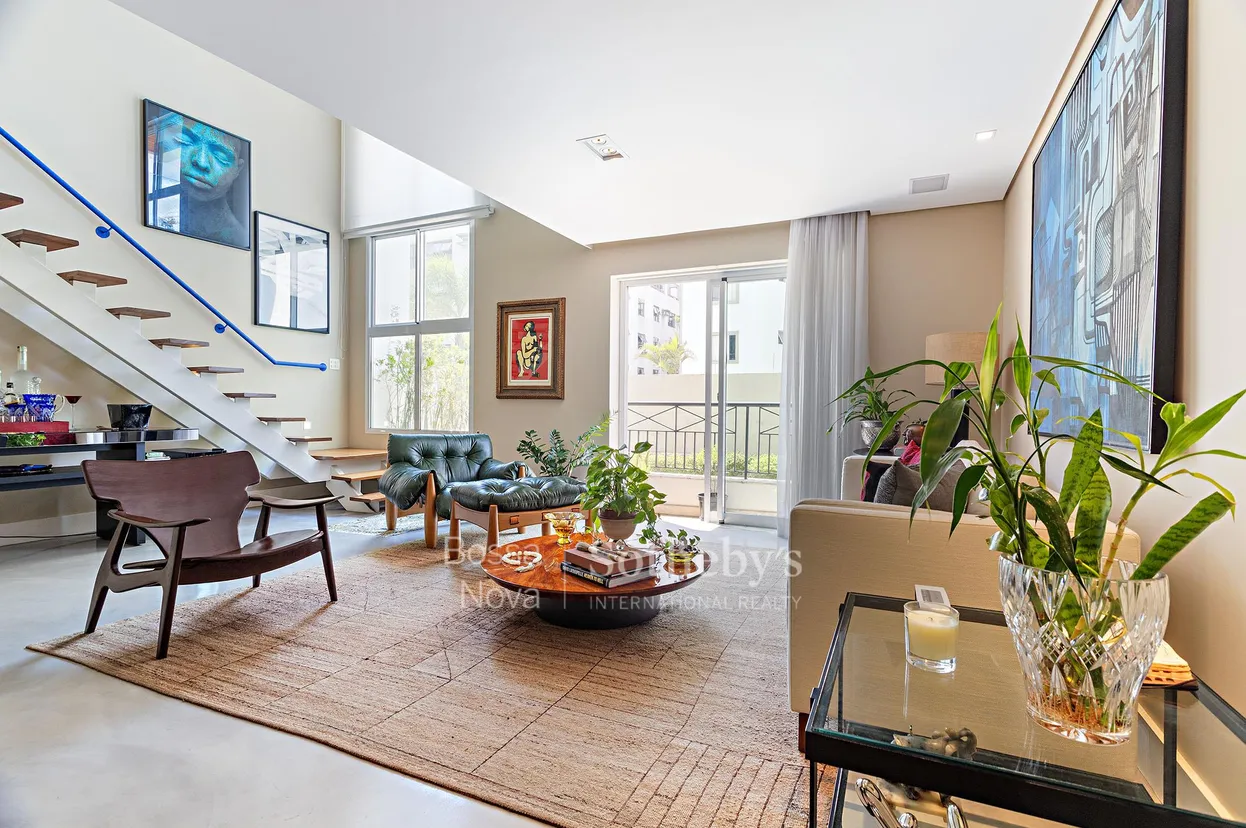 Apartamento reformado com pé-direito duplo em rua cobiçada de Pinheiros