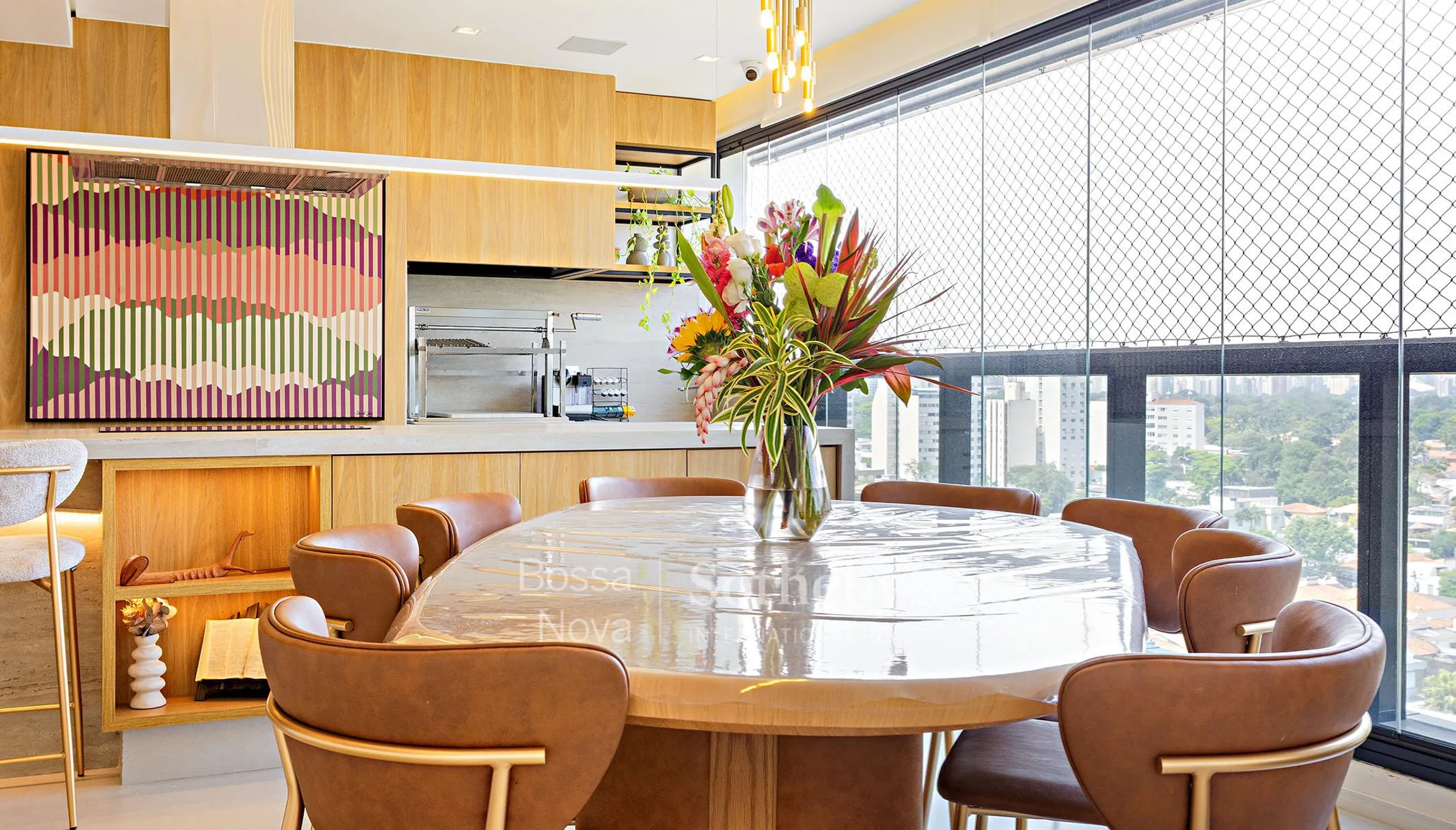 Com vista aberta para o verde do Jardim Europa, este apartamento em andar alto conta com projeto atual assinado por arquitetos. Os ambientes integrados favorecem a luminosidade e o uso inteligente dos espaços. A varanda envidraçada foi incorporada ao living, criando continuidade entre a sala de jantar, a cozinha e o home theater. Um canto do living foi adaptado para escritório, ideal para quem busca funcionalidade no dia a dia. A área íntima dispõe de três suítes com armários planejados e ar-condicionado inverter. O condomínio oferece lazer completo, com academia bem equipada, espaço kids, área gourmet no rooftop, piscina e sauna.