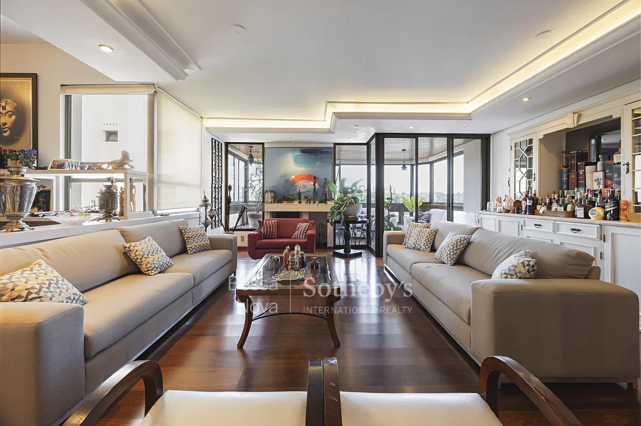 Apartamento localizado em frente à Praça Visconde de Cunha Bueno , hall social , living para dois ambientes, 4 suítes com vista espetacular para o verde, lavabo , sala de jantar, escritório ,sala de almoço, lareira , adega climatizada 5 vagas livres com expressivo depósito .
