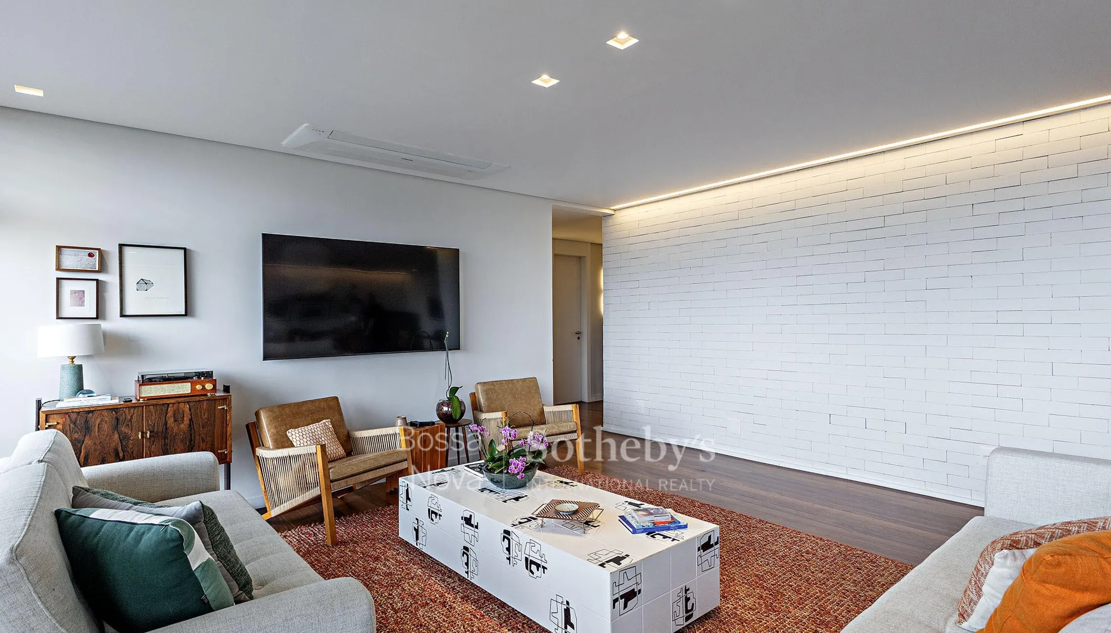Apartamento no Real Parque totalmente reformado, com projeto que privilegia integração e funcionalidade. Os ambientes sociais permitem conexão entre living, sala de jantar e cozinha, que pode ser aberta conforme a necessidade do uso. A planta dispõe de espaços bem distribuídos e marcenaria planejada. O condomínio oferece lazer completo, com estrutura adequada ao cotidiano, em localização com acesso facilitado a serviços e às escolas do bairro.