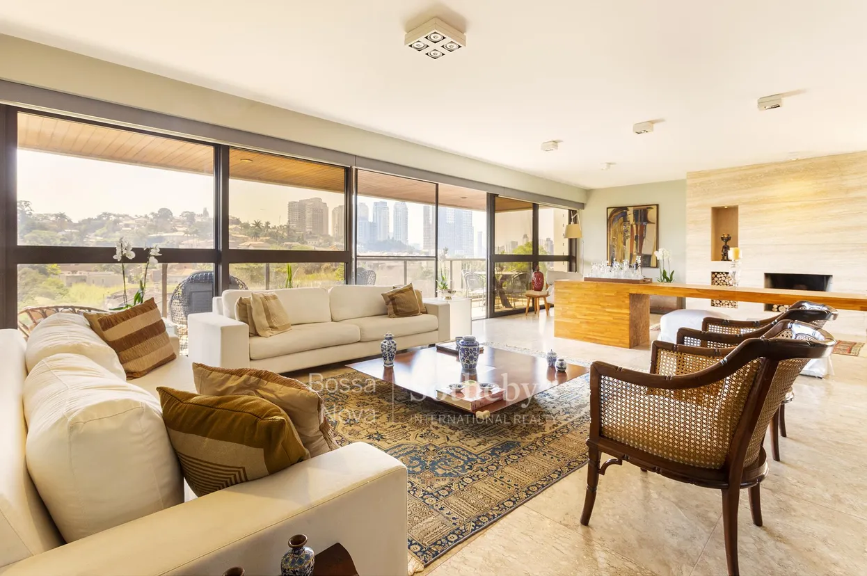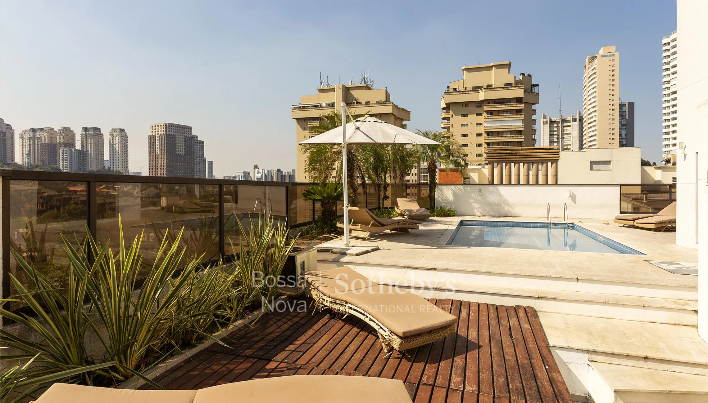 Cobertura Duplex em uma rua cobiçada do Real Parque, arborizada e tranquila. O pavimento inferior é composto por sala para quatro ambientes, lareira, varanda com vista para árvores, sala de almoço, cozinha reformada, área de serviço e dependências para funcionários. Na área íntima há quatro suítes com varanda. O pavimento superior possui piscina, churrasqueira coberta com salão de festas, academia privativa, sauna, além de mais uma suíte e escritório.
