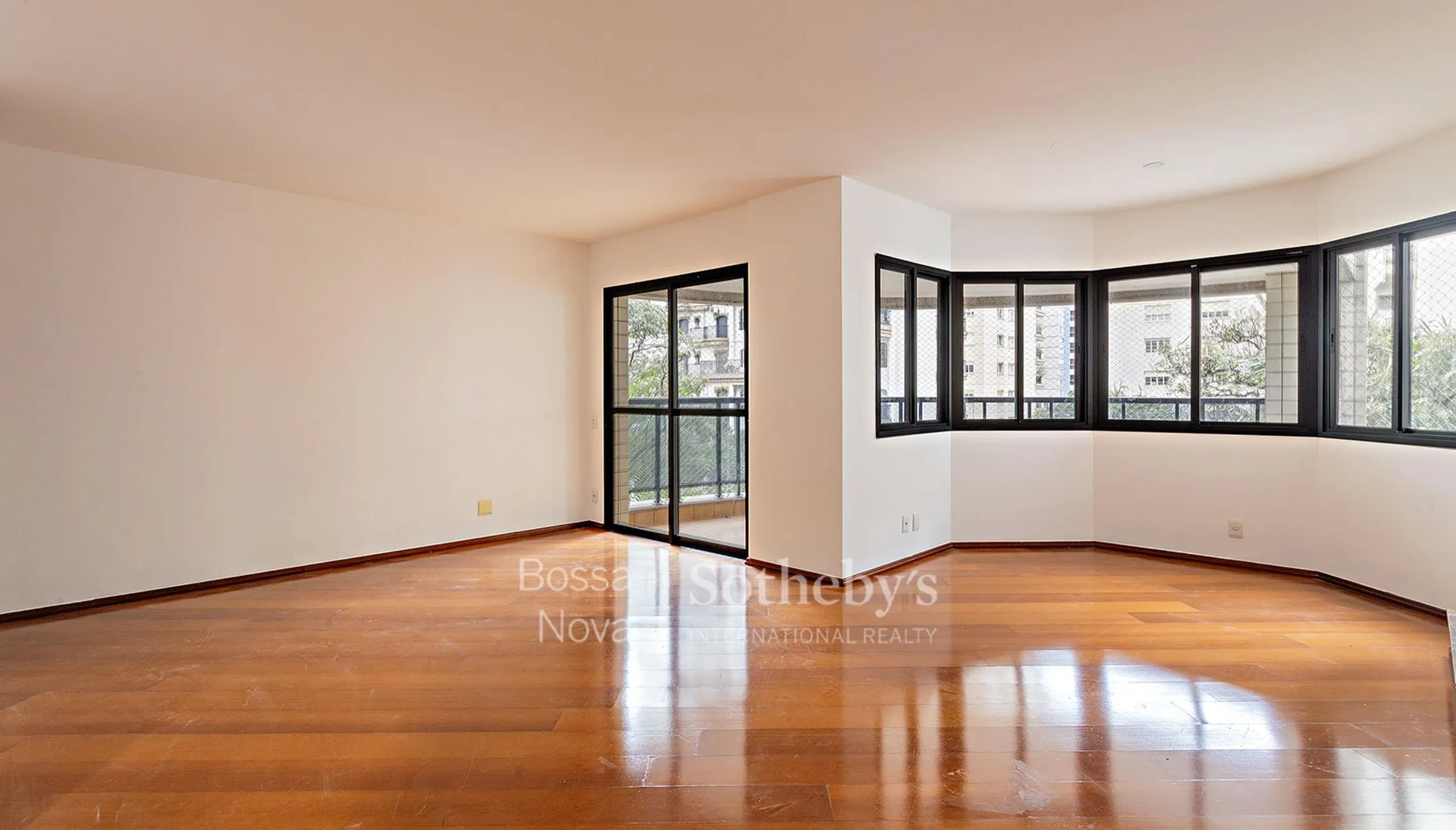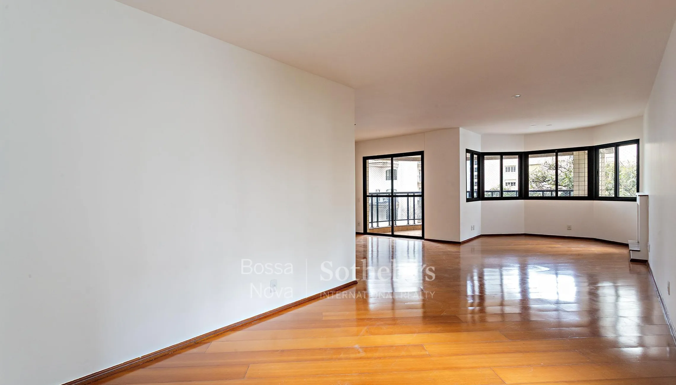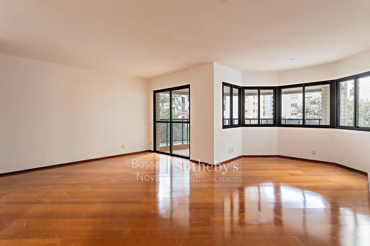 Localizado na parte baixa de Higienópolis, próximo ao Hospital Samaritano, este apartamento está em posição estratégica, com fácil acesso às conveniências dos bairros Higienópolis e Santa Cecília. O edifício, construído no final dos anos 1990, possui arquitetura com varandas arredondadas e oferece hall privativo, com apenas uma unidade por andar. O living é claro e ventilado, com dois ambientes, lareira, lavabo e uma ampla varanda com vista para as copas das árvores. A área íntima conta com quatro suítes com armários, sendo a principal equipada com ar-condicionado, banheira e sala íntima. A cozinha, bem iluminada, é acompanhada por sala de almoço, despensa, área de serviço e dependência de funcionária. O apartamento dispõe de quatro vagas de garagem.