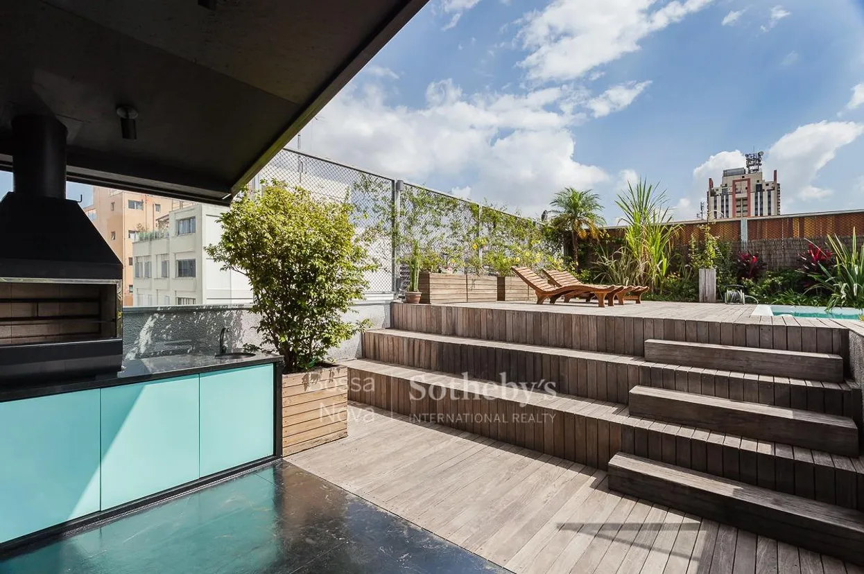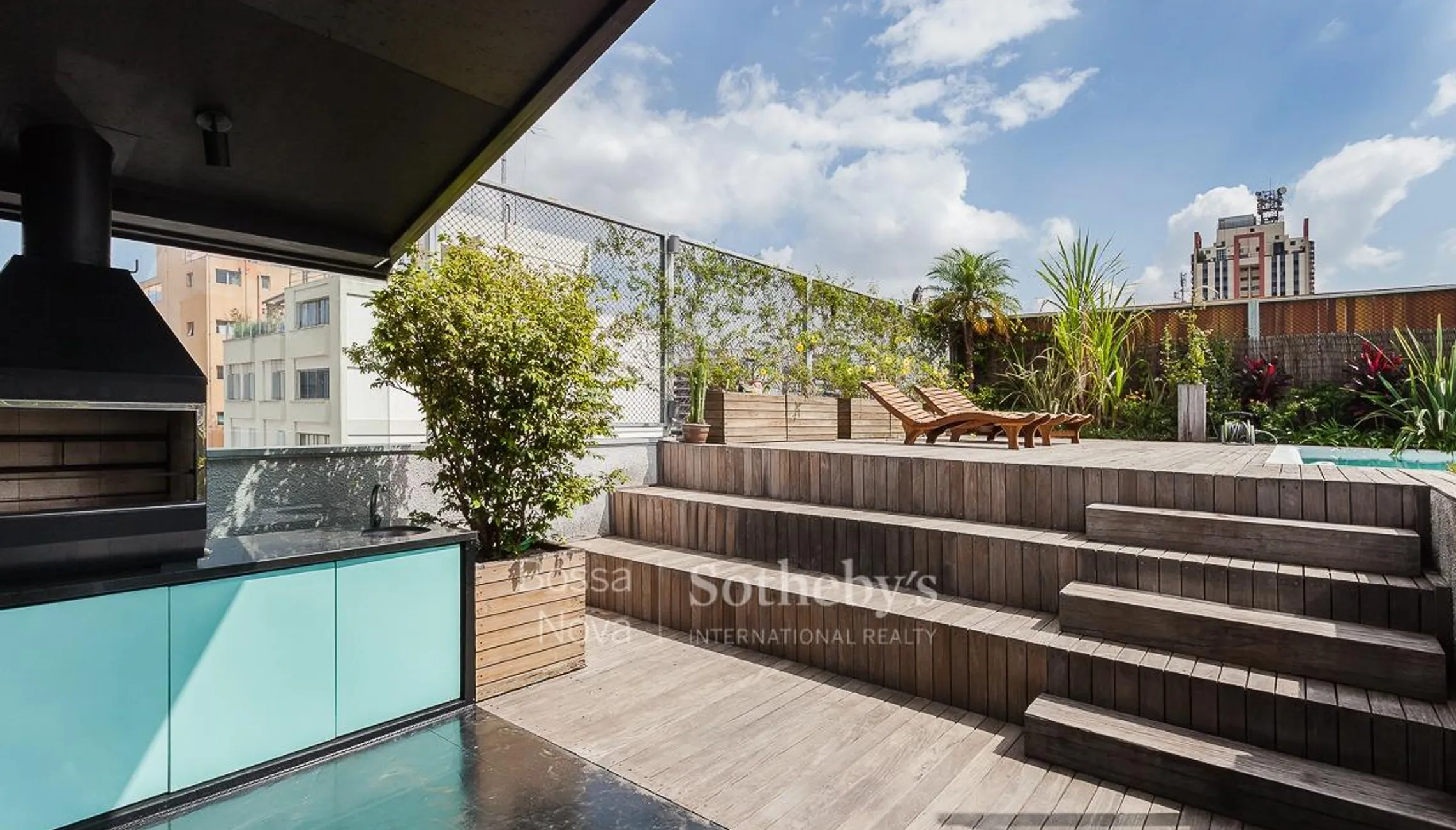 Cobertura localizada em rua arborizada, a dez minutos a pé do metrô Vila Madalena. Possui projeto e ambientação idealizados por arquitetos renomados. Conta com living amplo e convidativo, sala de jantar integrada à cozinha, sala de TV e suíte máster com closet. Há salão de jogos integrado à área externa, que tem vista para o bairro do Sumaré, além de piscina com deck de madeira cumaru e churrasqueira. O edifício é premiado e assinado pelo escritório IdeaZarvos.