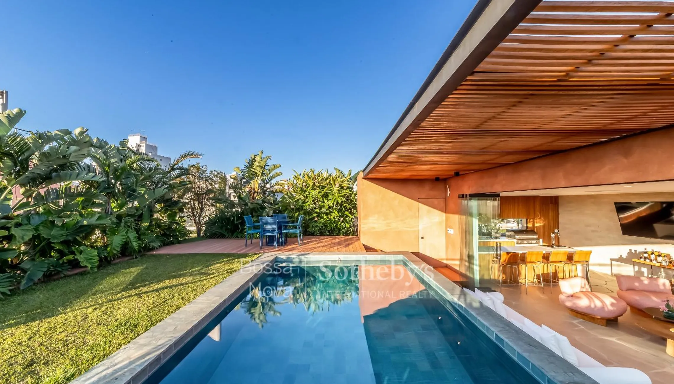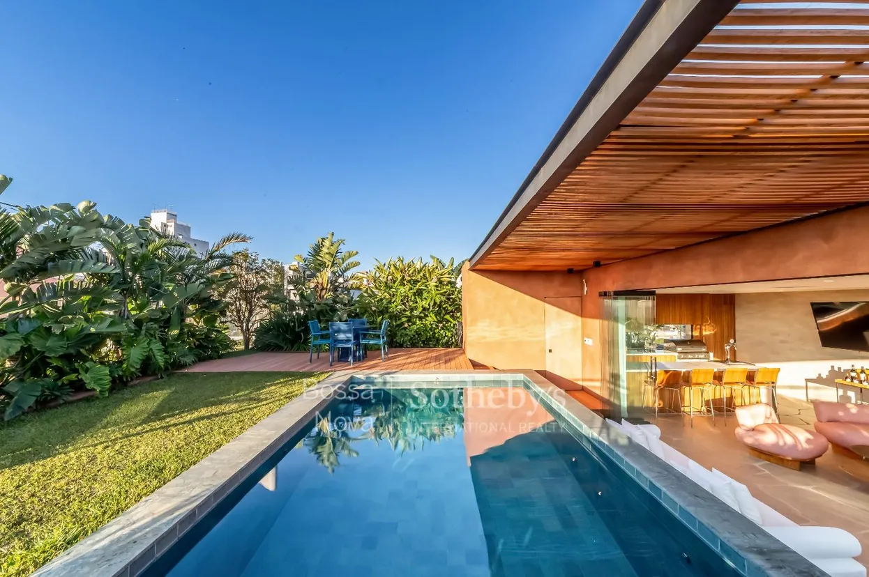 Localizada em região com acesso a serviços e vias principais, esta cobertura apresenta living com varandas perimetrais e integração com a sala de jantar por portas de correr. A área íntima dispõe de três suítes com closets, sendo a principal com dois closets. Escritório, lavabo, sala de almoço e área de serviço complementam o pavimento inferior. No piso superior, a área externa reúne piscina e espaço gourmet em ambiente avarandado, além de sala com lareira a gás, escritório e lavabo. O imóvel conta com ar-condicionado central quente e frio, persianas elétricas, aquecedor de passagem com acumulador, piso em tacos de madeira cumaru, cozinha Artigiano e equipamentos instalados na área gourmet.