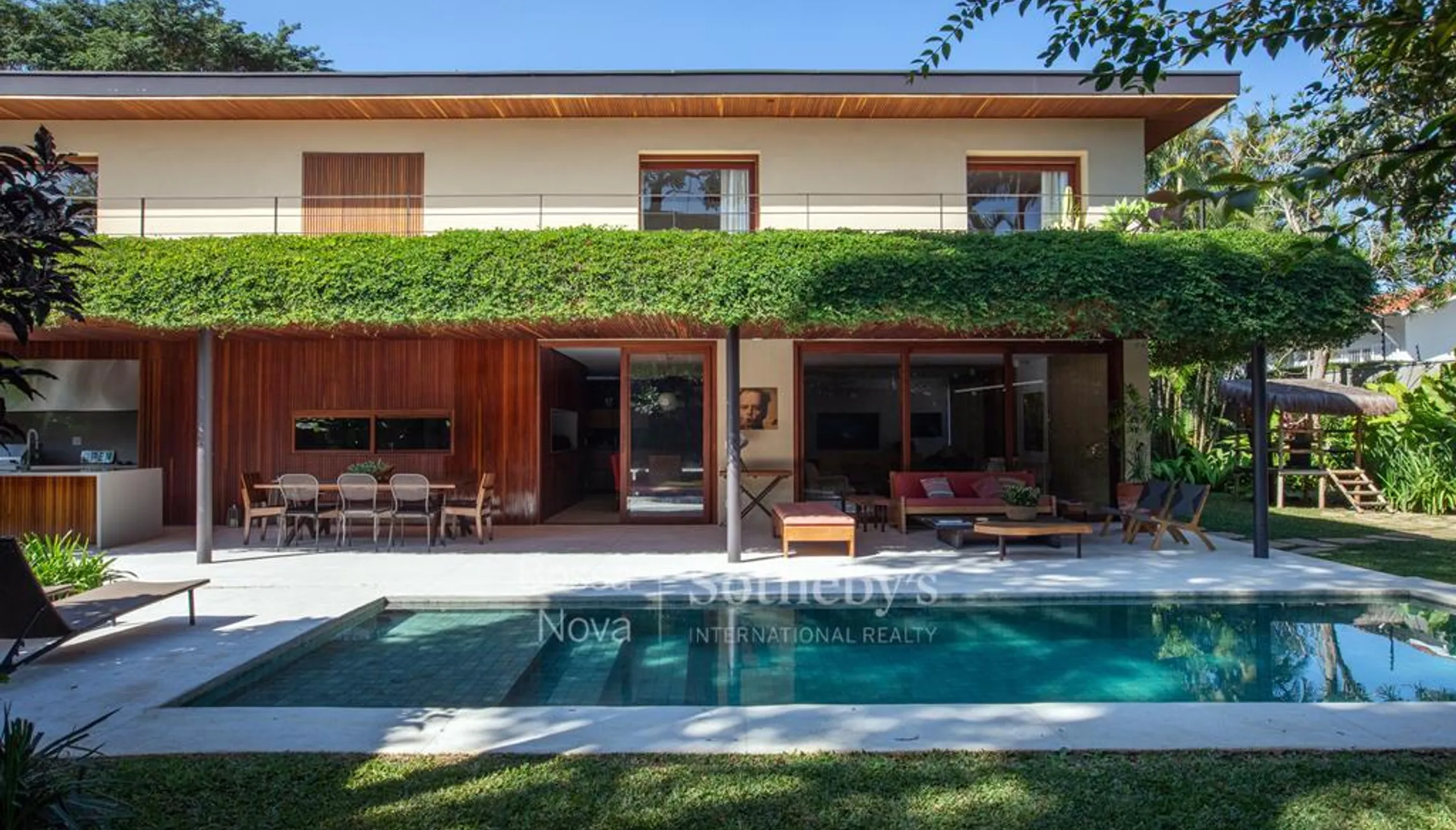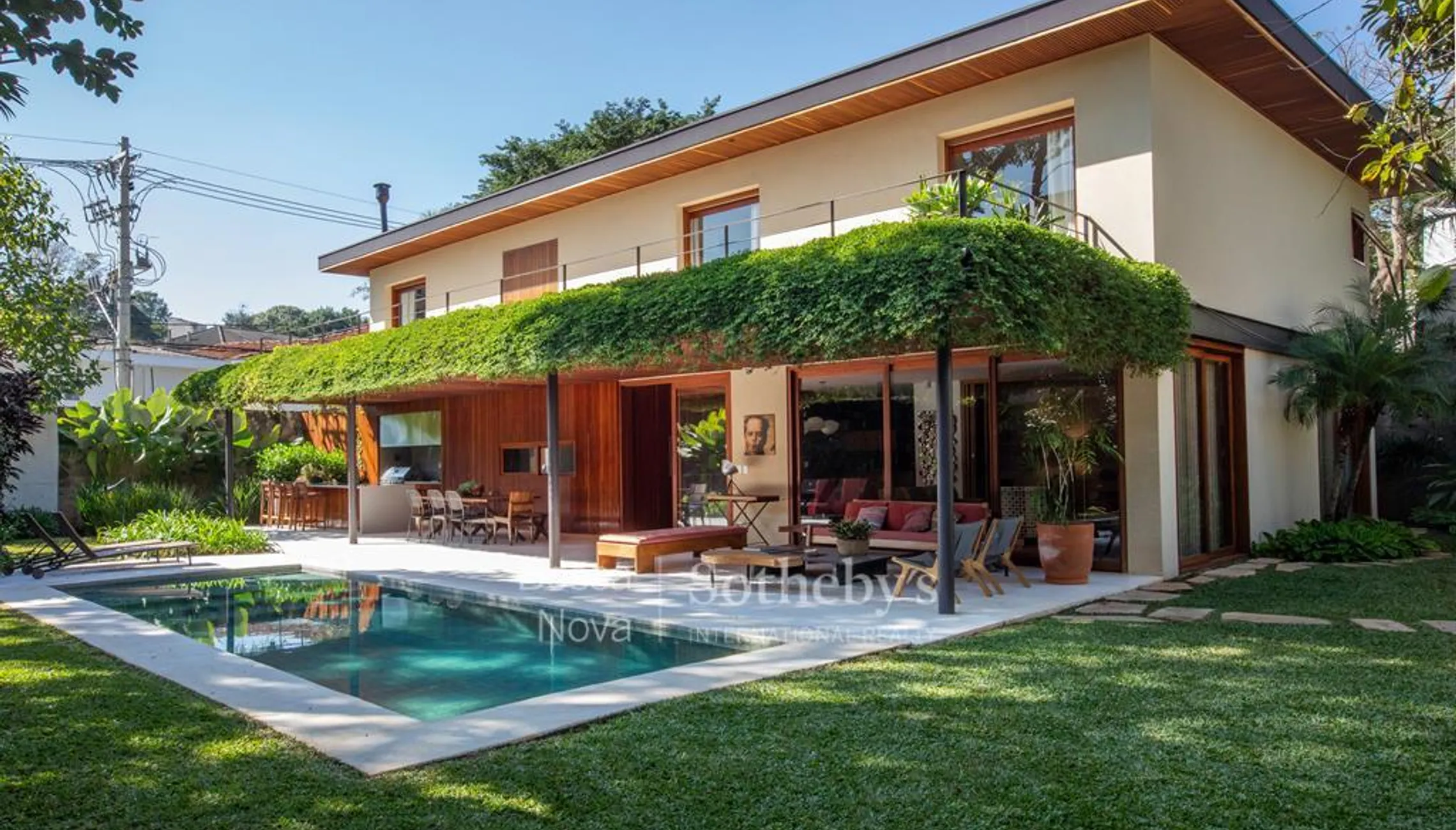 Projeto assinado por Fernanda Neiva, esta residência passou por reforma completa em terreno de boas dimensões e reúne sofisticação e soluções de sustentabilidade. A área social conta com living para três ambientes integrados à varanda gourmet e à piscina aquecida, criando espaços fluidos para convivência. A área íntima dispõe de cinco suítes, sendo quatro principais — todas com sacada e a máster com closet — além de uma suíte destinada a hóspedes, oferecendo conforto e privacidade. O imóvel apresenta diferenciais como ar-condicionado em todos os ambientes, energia solar, sistema de reuso de água e tecnologia fotovoltaica. Conta ainda com sistema de segurança com inteligência artificial, cinco vagas de garagem e localização em rua arborizada com monitoramento, que assegura tranquilidade.