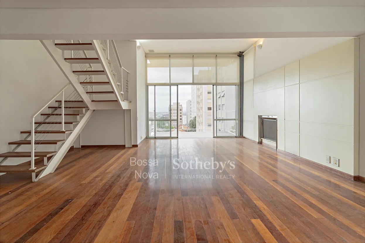 Localizada nas proximidades do metrô Vila Madalena, esta cobertura triplex apresenta projeto arquitetônico diferenciado e ambientes integrados que favorecem a luminosidade natural. A área social é composta por living com lareira e acesso ao terraço, além de varanda que proporciona vista livre e agradável da região. O espaço integra sala de jantar e cozinha planejada, com marcenaria funcional e acabamentos de qualidade. A área íntima conta com duas suítes bem distribuídas e equipadas com ar-condicionado e armários sob medida. O piso de madeira reforça a sensação de conforto e elegância em todos os ambientes. As escadas em vão livre conectam os andares com leveza visual, valorizando o desenho arquitetônico. O imóvel dispõe ainda de área de serviço organizada e duas vagas de garagem. O edifício se destaca pelo estilo contemporâneo e pela localização conveniente, em uma das regiões mais desejadas da cidade, com acesso fácil a cafés, restaurantes e facilidades urbanas.