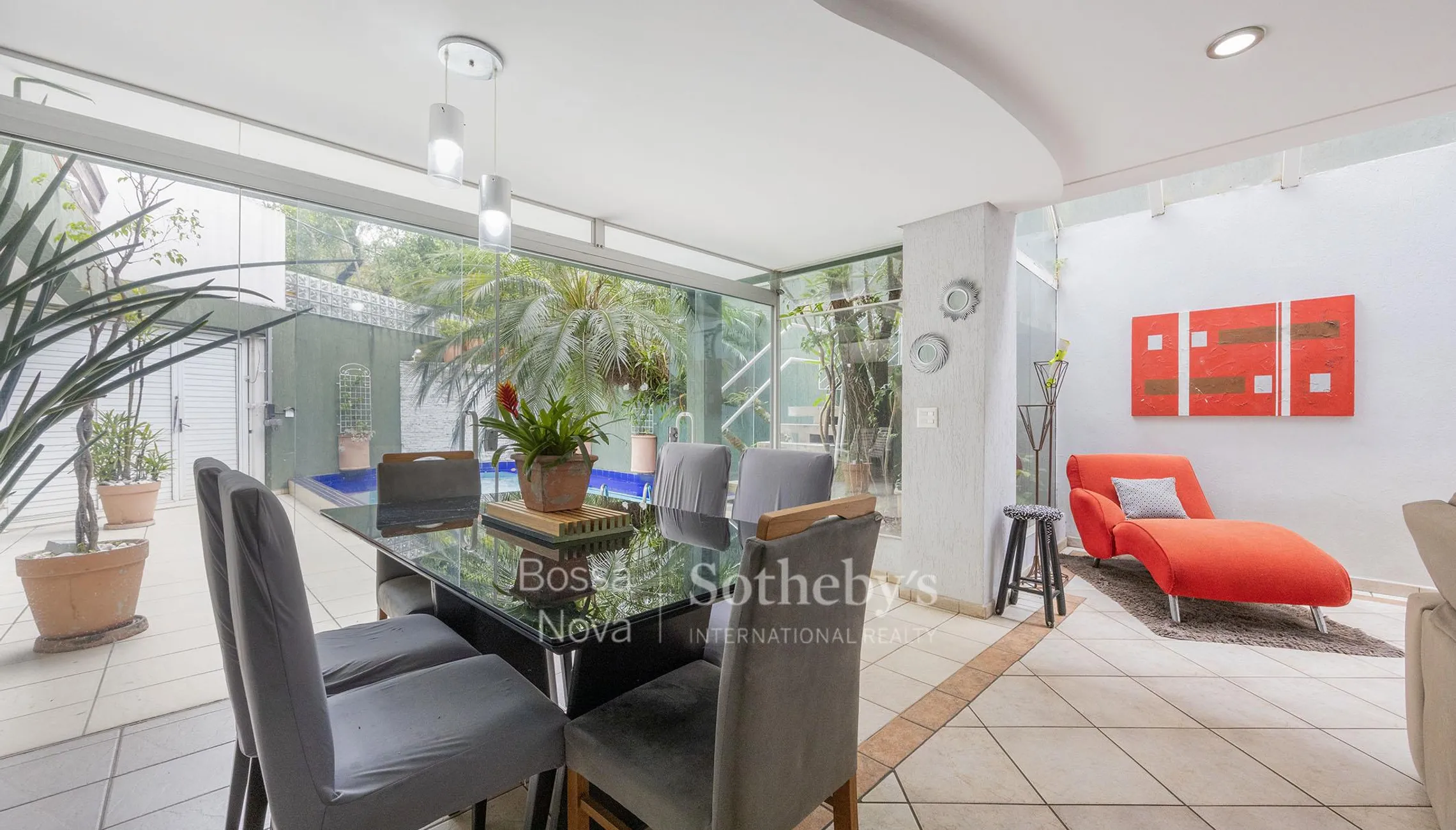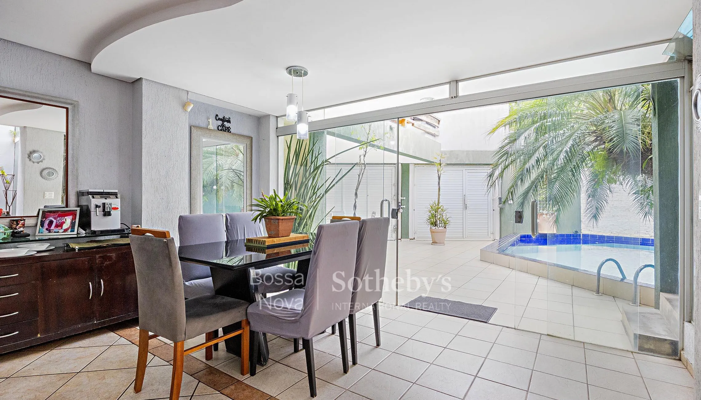 A casa apresenta uma planta dinâmica em que os ambientes de estar e jantar se conectam à área externa, que abriga uma piscina envolvida por área verde e recebe boa iluminação natural graças às amplas janelas, embora o imóvel demande atualização. No nível superior, os dormitórios têm acesso a uma varanda que integra a área gourmet com churrasqueira e forno a lenha. A suíte ampla conta com closet e o imóvel dispõe ainda de escritório, oferecendo espaços versáteis para rotina diária. Localizada nas proximidades da Praça Dolores Ibarruri, a região conta com escolas e comércio variados, garantindo praticidade no entorno, além de três vagas de garagem.