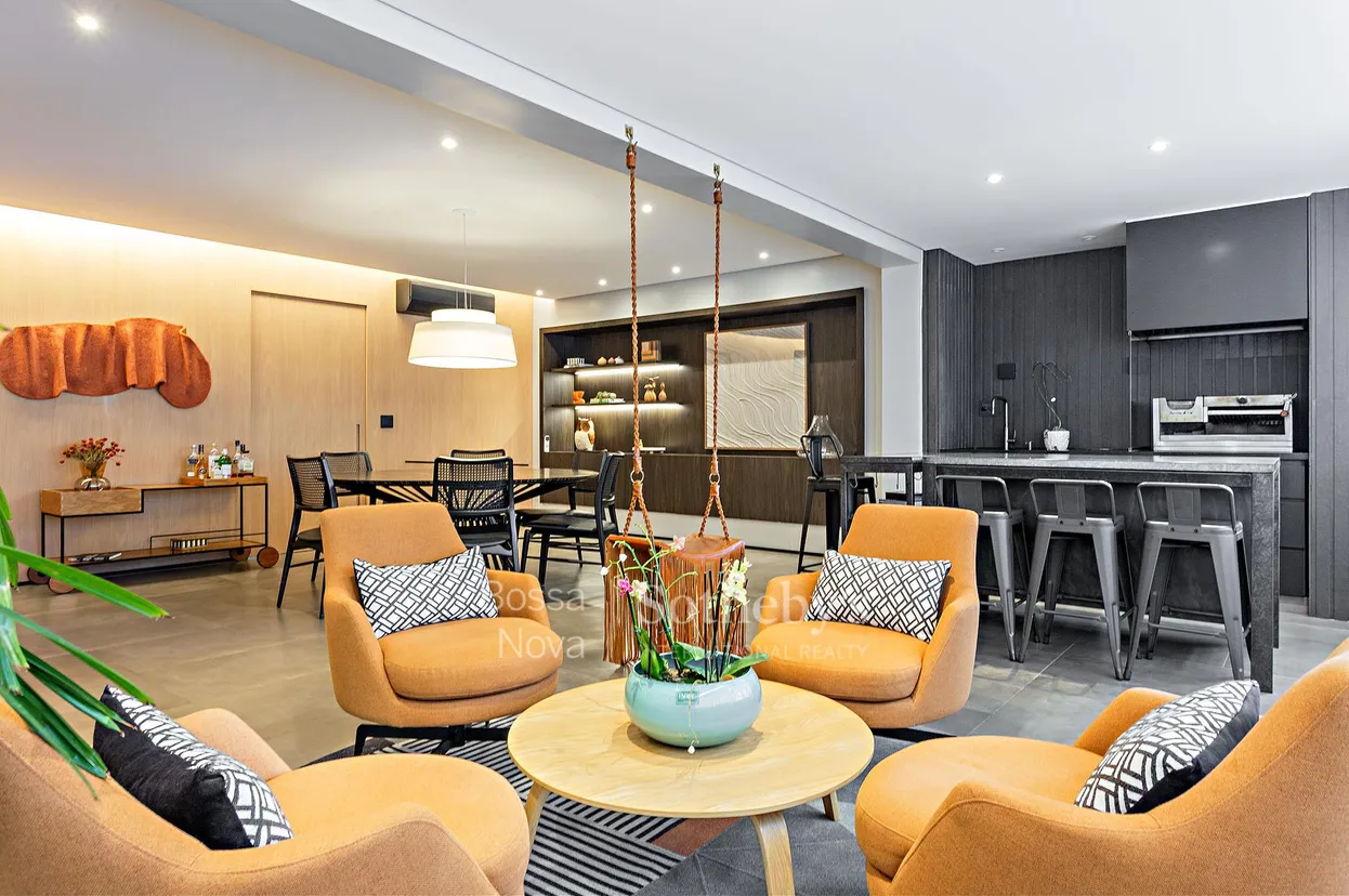 Localizado próximo ao Parque Ibirapuera, este apartamento passou por reforma recente e apresenta living amplo para três ambientes, com estar, jantar e espaço gourmet voltado para as copas das árvores. Um painel de madeira com porta embutida integra o living à copa e à cozinha, que conta com adega para quatrocentas garrafas. A área íntima reúne quatro suítes, sendo a principal com walk-in closet e duas áreas de banho, além de porta blindada e gerador para atendimento integral. O condomínio oferece infraestrutura completa de lazer, com piscina coberta e aquecida com raia, piscinas descobertas adulto e infantil, sauna, academia, pet play, salão de festas, playground e quadra de esportes, compondo um conjunto funcional em endereço de alta conveniência.