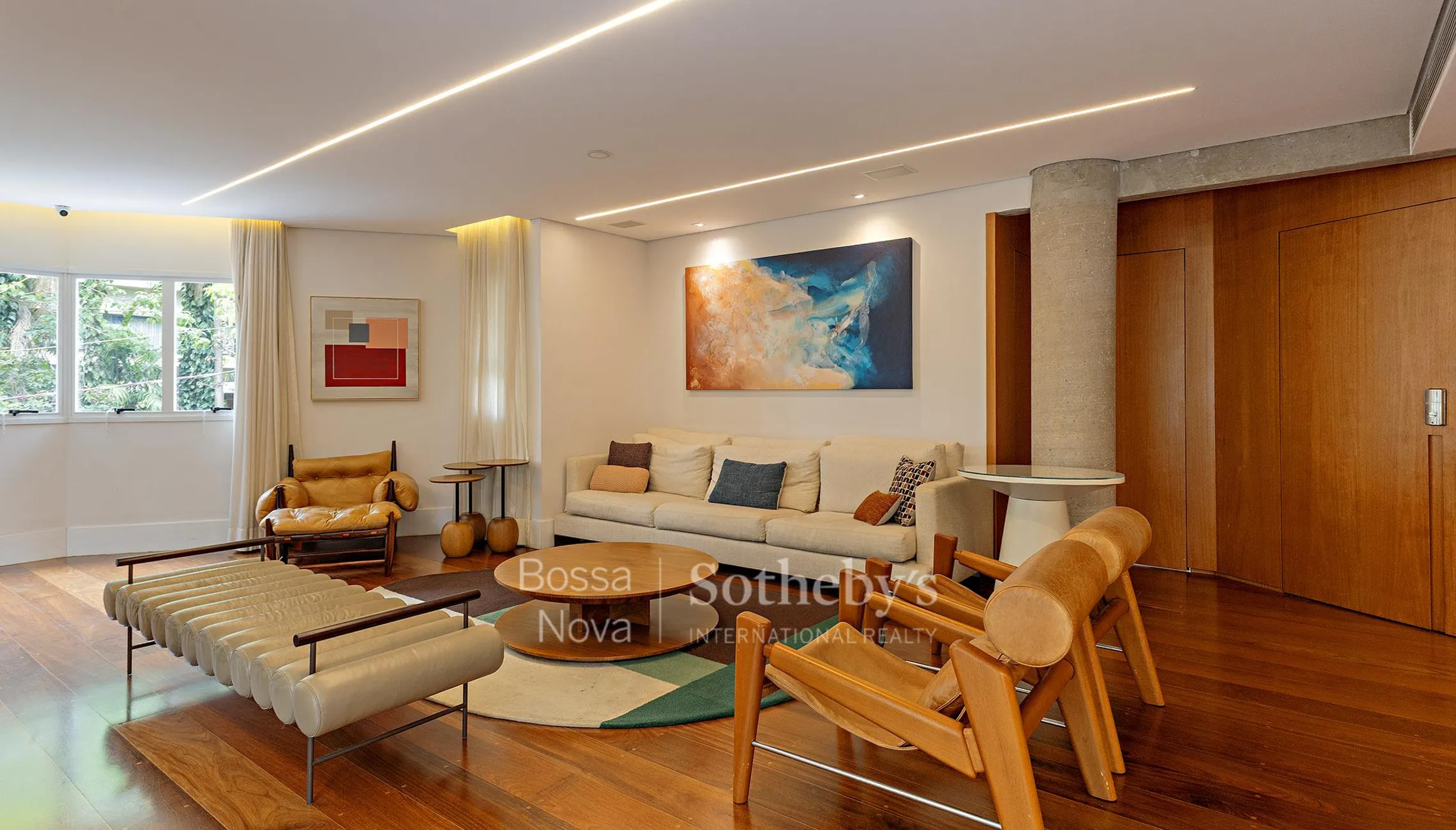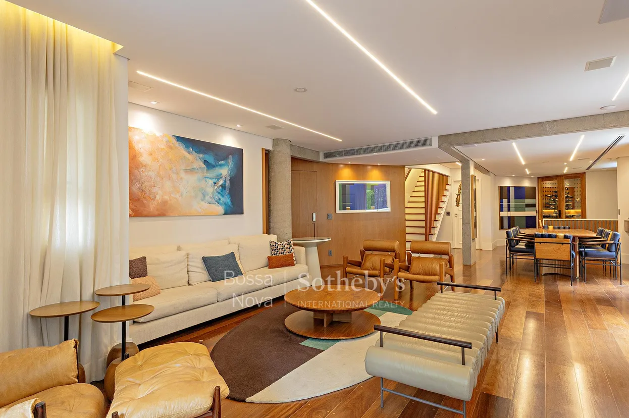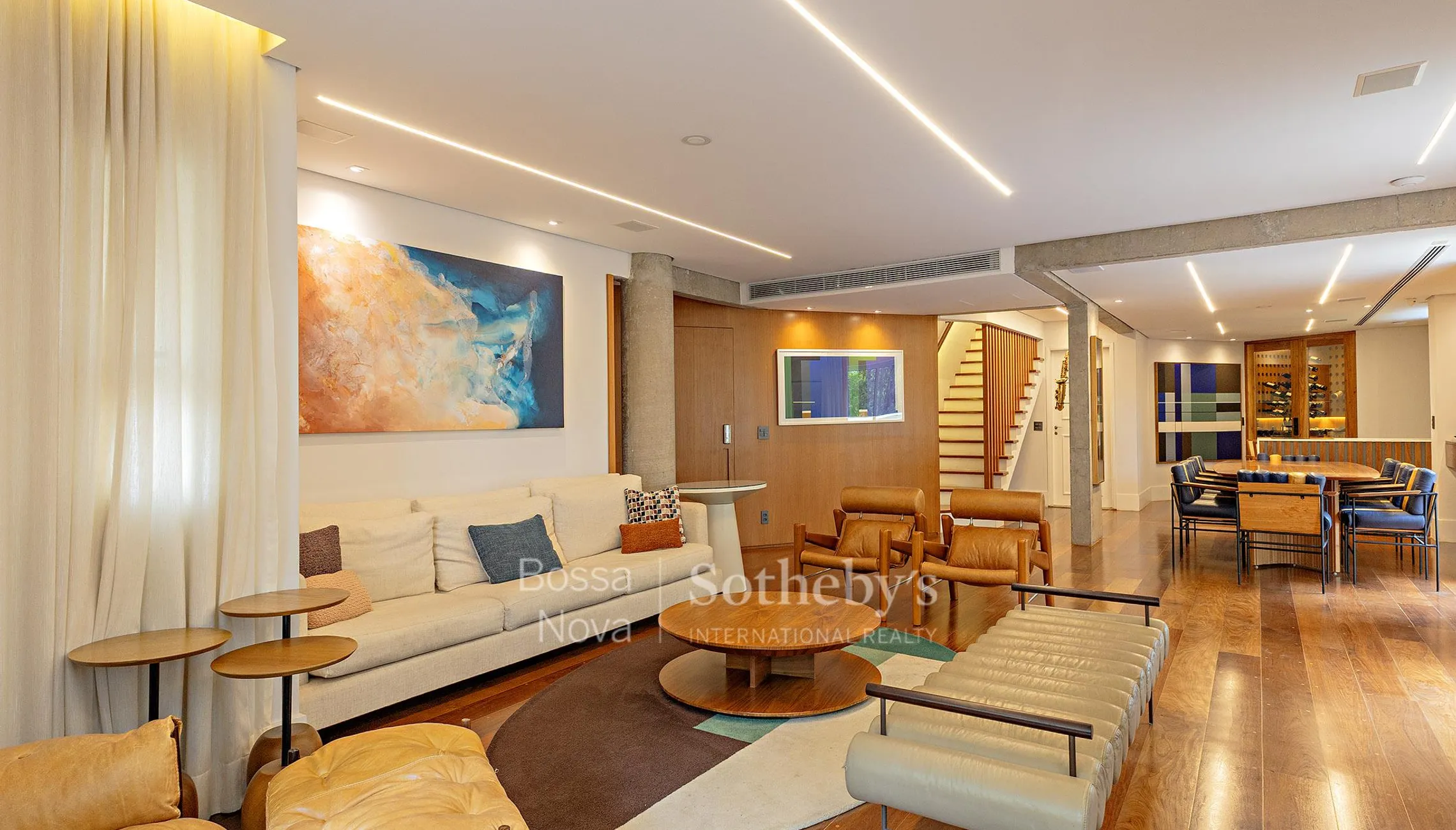 Em localização privilegiada ao lado do Parque Ibirapuera, este duplex se destaca pela ampla iluminação natural e pela vista para as copas das árvores do parque e da Praça Cidade de Milão. O living, com sala de estar e sala de jantar, é espaçoso e bem ventilado, enquanto o terraço oferece uma vista agradável para a área verde. O imóvel conta com adega climatizada para até 696 garrafas, acompanhada por mesa de degustação, automação completa via Alexa com controle de som, iluminação e climatização, além de escritório, cozinha com copa. No pavimento superior está a área íntima, composta por cinco suítes, sendo duas com terraço e a principal equipada com lareira, walk-in closet e banheiro com hidromassagem, piso em madeira. O edifício oferece lazer com piscina, espaço gourmet, academia e segurança 24 horas, proporcionando conforto e privacidade em um dos endereços mais desejados da cidade.
