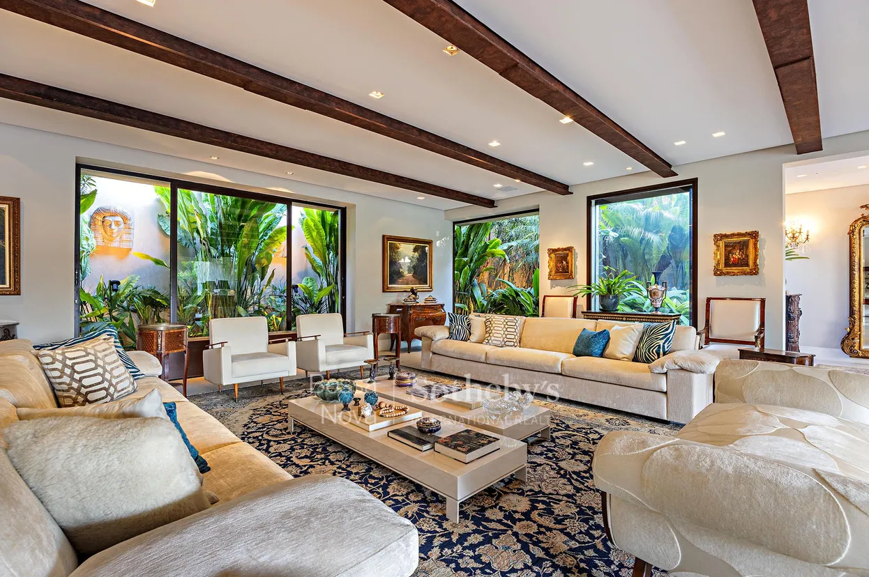 Localizada em um dos endereços mais valorizados de São Paulo, esta residência conta com projeto de arquitetura assinada e integração ao paisagismo. O jardim com fonte, hidromassagem e sistema de irrigação automatizado se conecta aos ambientes sociais. Para lazer e bem-estar, dispõe de quadra poliesportiva coberta e academia privativa. Os espaços de convivência são amplos e iluminados, distribuídos em cinco salas voltadas para o verde. A área íntima oferece três suítes, incluindo a master com closet e banheiros independentes. A infraestrutura contempla elevador interno, gerador, porta blindada na escada e sistema de segurança com vigilância 24 horas, câmeras e alarmes. A propriedade está a poucos minutos do Parque Ibirapuera.