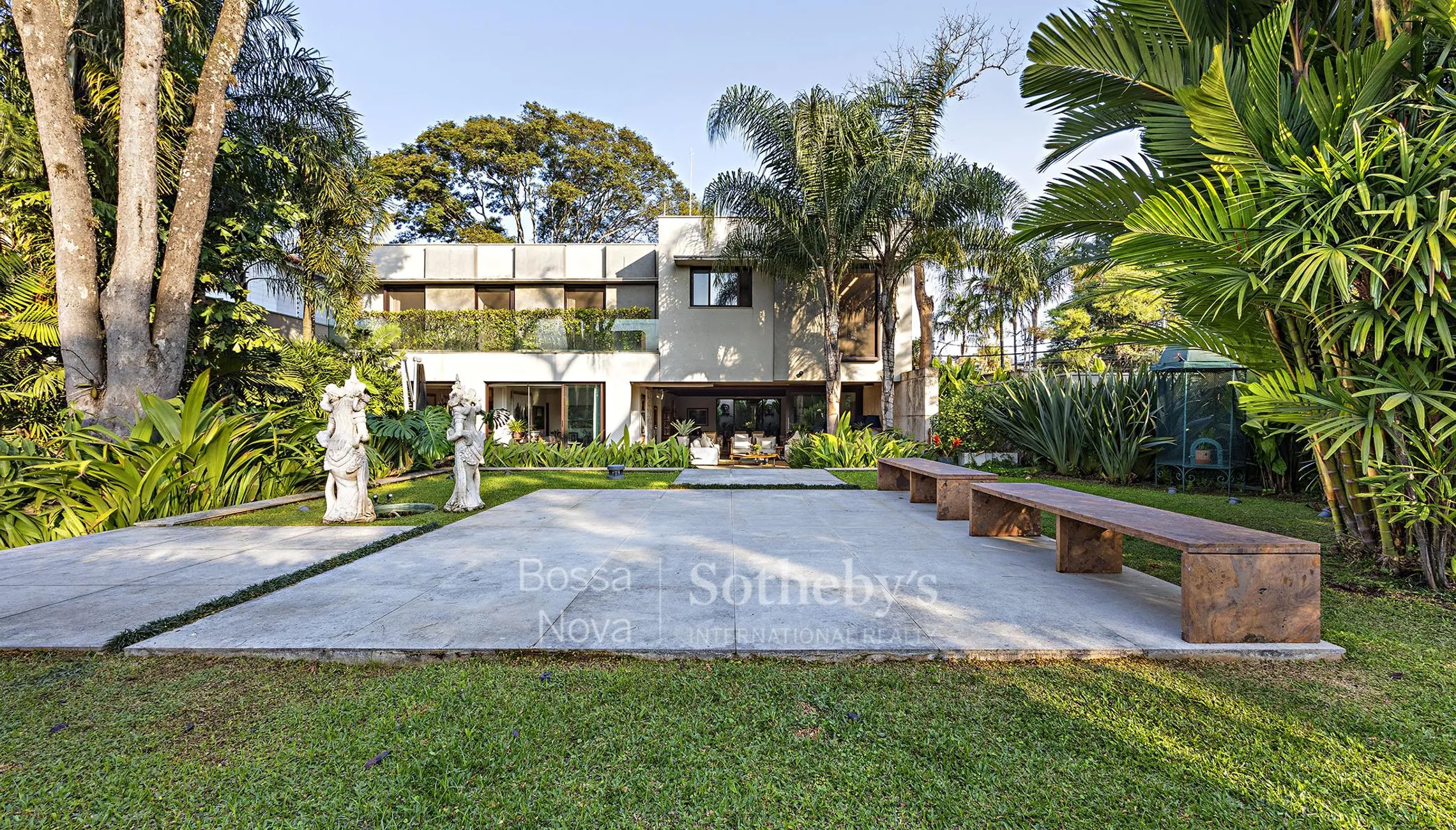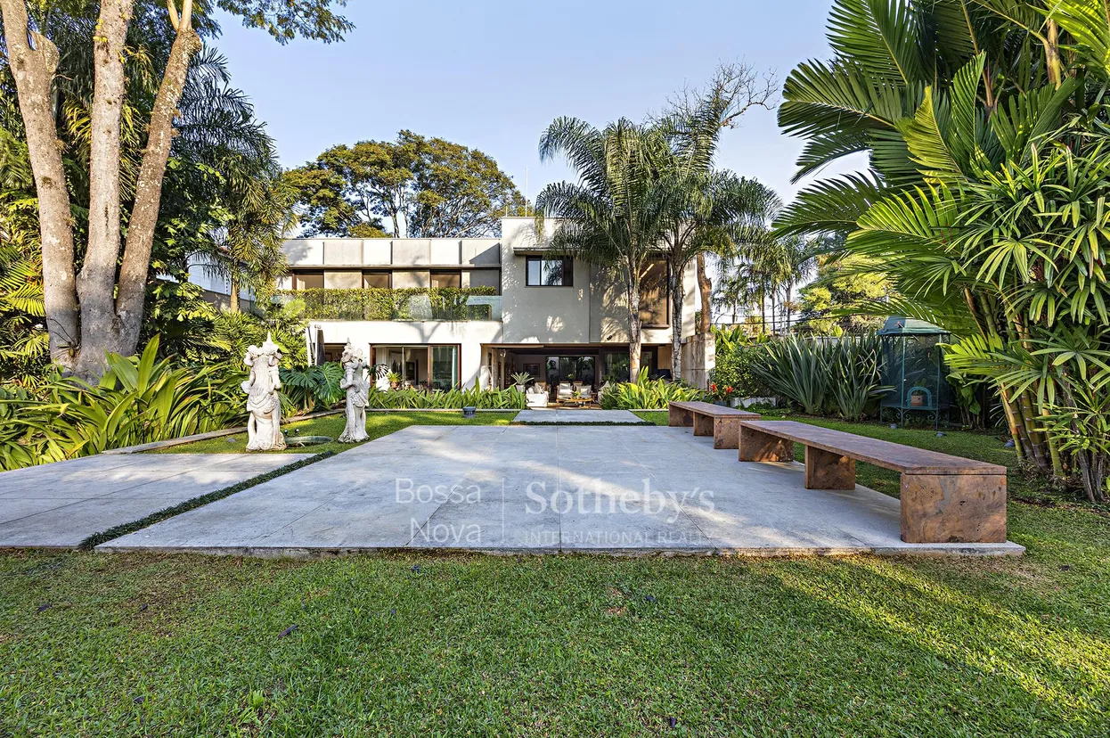 Localizada em um dos endereços mais valorizados de São Paulo, esta residência conta com projeto de arquitetura assinada e integração ao paisagismo. O jardim com fonte, hidromassagem e sistema de irrigação automatizado se conecta aos ambientes sociais. Para lazer e bem-estar, dispõe de quadra poliesportiva coberta e academia privativa. Os espaços de convivência são amplos e iluminados, distribuídos em cinco salas voltadas para o verde. A área íntima oferece três suítes, incluindo a master com closet e banheiros independentes. A infraestrutura contempla elevador interno, gerador, porta blindada na escada e sistema de segurança com vigilância 24 horas, câmeras e alarmes. A propriedade está a poucos minutos do Parque Ibirapuera.