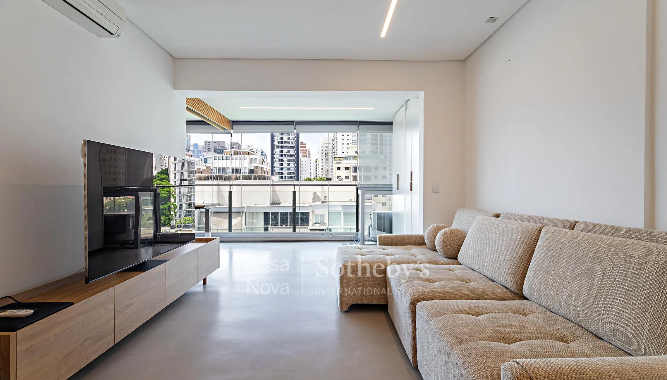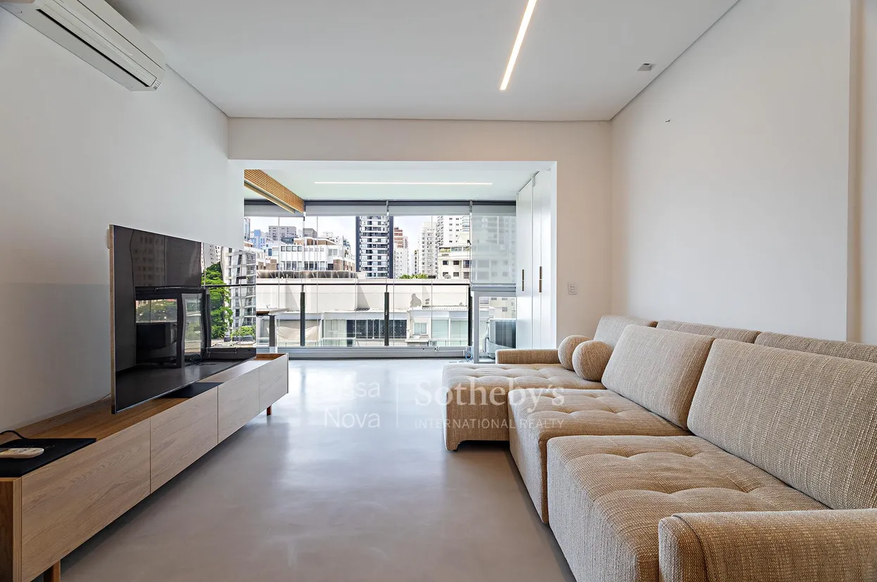 Apartamento situado próximo ao Parque Ibirapuera, com acesso às principais vias da região. O edifício oferece áreas comuns completas, e a unidade mobiliada apresenta acabamentos neutros. Os ambientes são integrados e voltados para vista urbana.