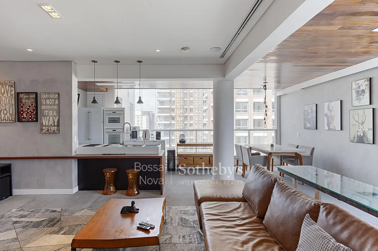 Apartamento todo mobiliado em localização privilegiada próximo a instituições de ensino como FMU, Insper e Universidade Anhembi Morumbi, além do Parque do Povo e da Praça Pereira Coutinho, contando com uma vista livre e voltada para os bairros nobres de São Paulo. Apresenta dois dormitórios, sendo uma delas a suíte principal, que é bem estruturada, ampliada e decorada. O apartamento dispõe, também, de box, varanda, piscina privativa, armários embutidos no quarto, nos banheiros e na cozinha, chuveiro a gás, cozinha americana com fogão e geladeira inclusos, e área de serviço.
