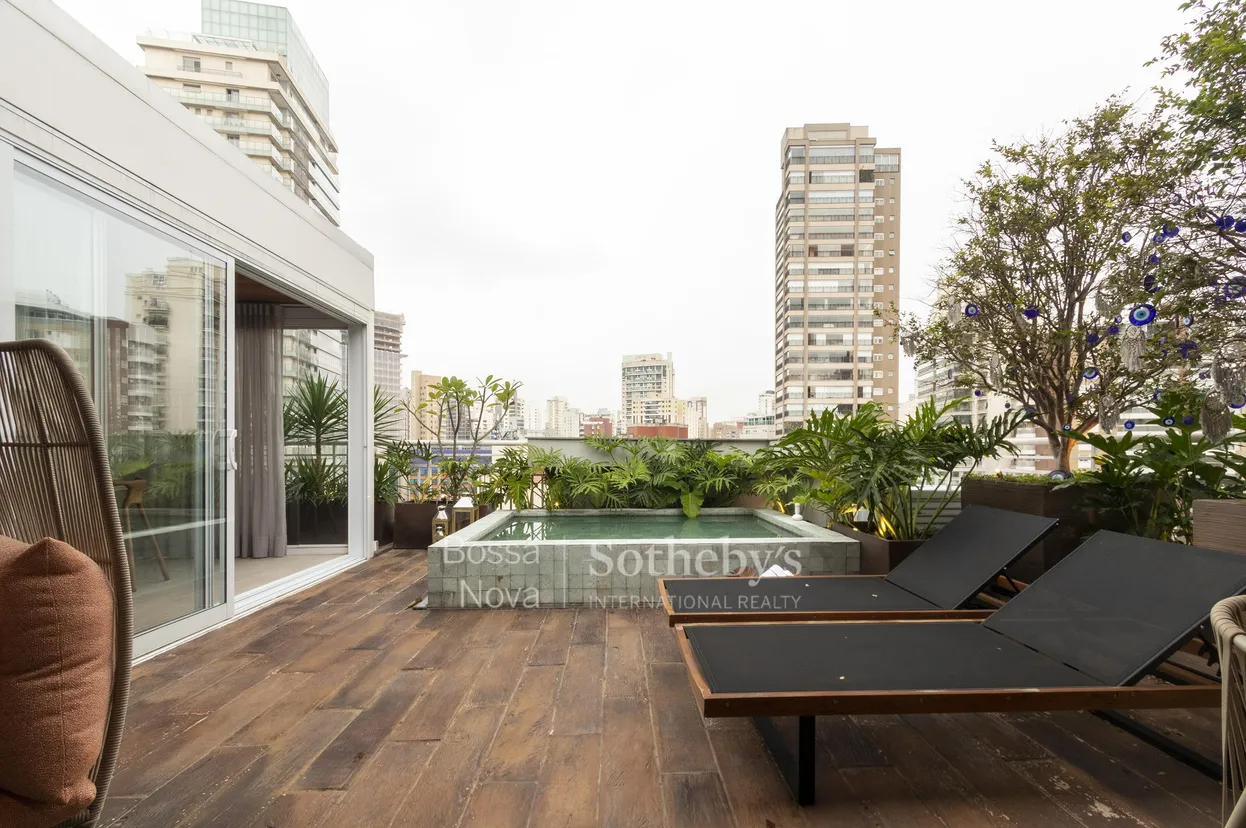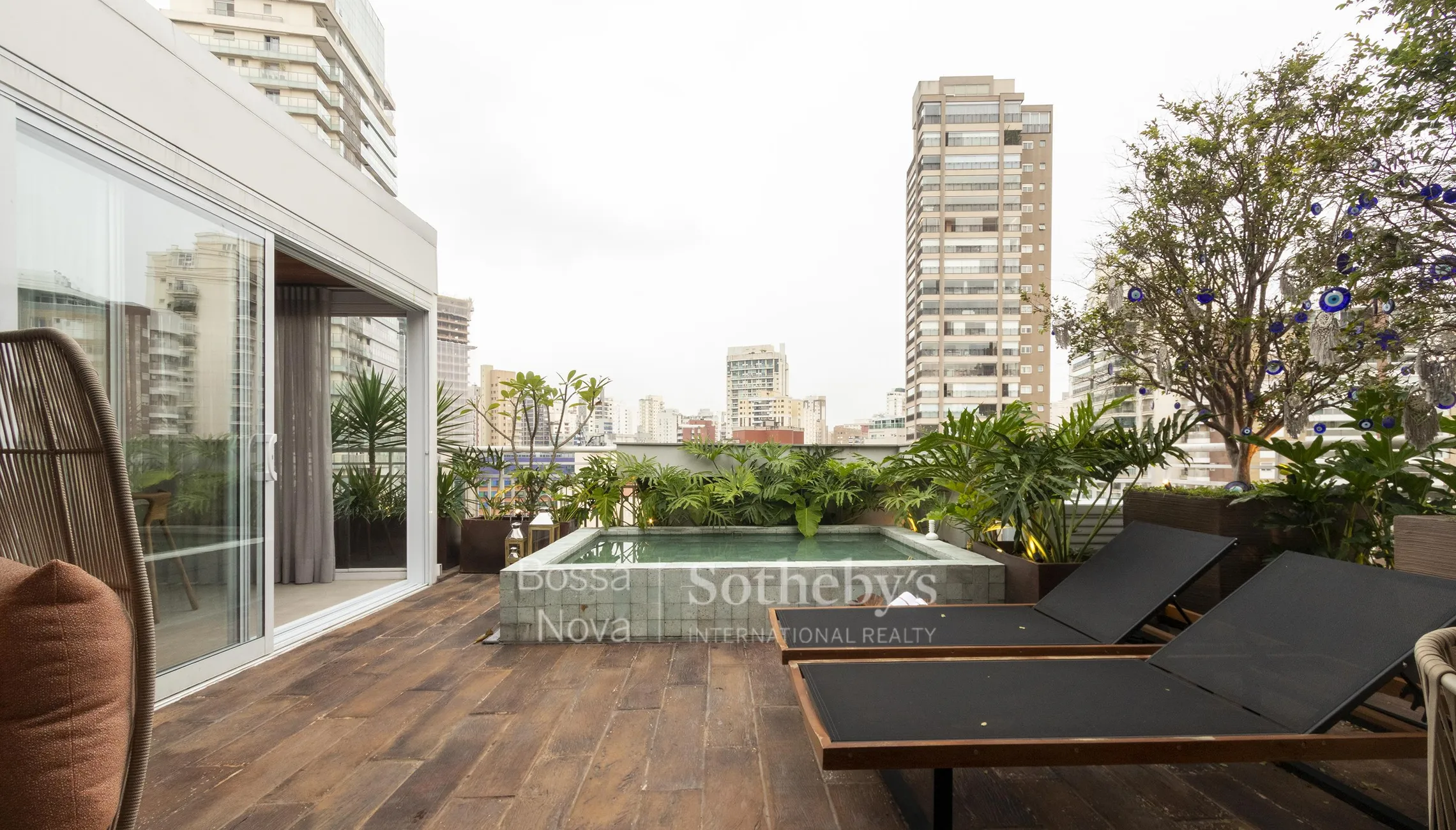 Localizado próximo ao Parque do Ibirapuera, o bairro permite fazer tudo a pé, possui uma boa infraestrutura comercial e de serviços. Cobertura duplex moderna, seu projeto foi desenvolvido para o convívio social e conforto dos moradores. O piso inferior dispõe de living para ambientes, estar, home theater e cozinha integrada, piso em porcelanato, ar-condicionado em todos os ambientes para um maior conforto. Piso superior passou por uma atualização recente e conta com piscina revestida em pedra hijau, solarium e terraço com espaço gourmet, living amplo para dois ambientes com sala de jantar. Na área íntima, atualmente um dos dormitórios foi transformado em closet de fácil reversão e um banheiro com banheira. Possui depósito privativo na garagem. O prédio é novo e possui gerador, piscina semi coberta aquecida, ofurô, sauna, sala de ginástica e espaço gourmet.