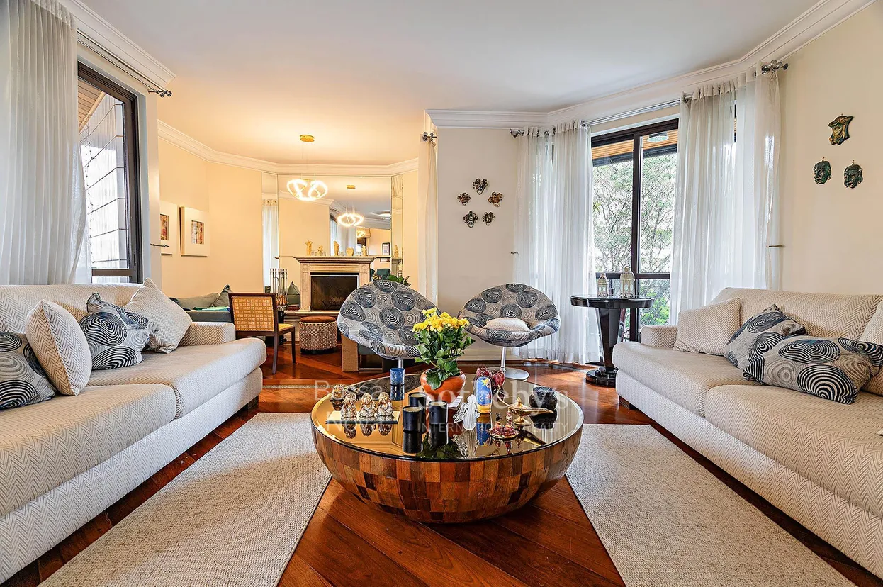 Apartamento localizado na Vila Nova Conceição, a poucos passos da Praça Pereira Coutinho, em uma das regiões mais valorizadas de São Paulo. A área social dispõe de living amplo para vários ambientes, sala de jantar, sala de almoço, home theater e sala de lareira, todos integrados a um terraço gourmet que favorece a integração entre os espaços. A área íntima conta com quatro suítes, planejadas para oferecer privacidade. A cozinha é funcional e bem distribuída, acompanhada de área de serviço. O edifício dispõe de gerador full que atende todo o apartamento, além de piscina com solarium, academia, quatro vagas de garagem e depósito.