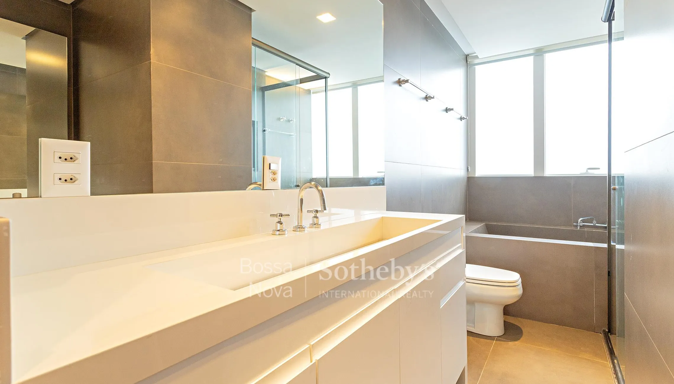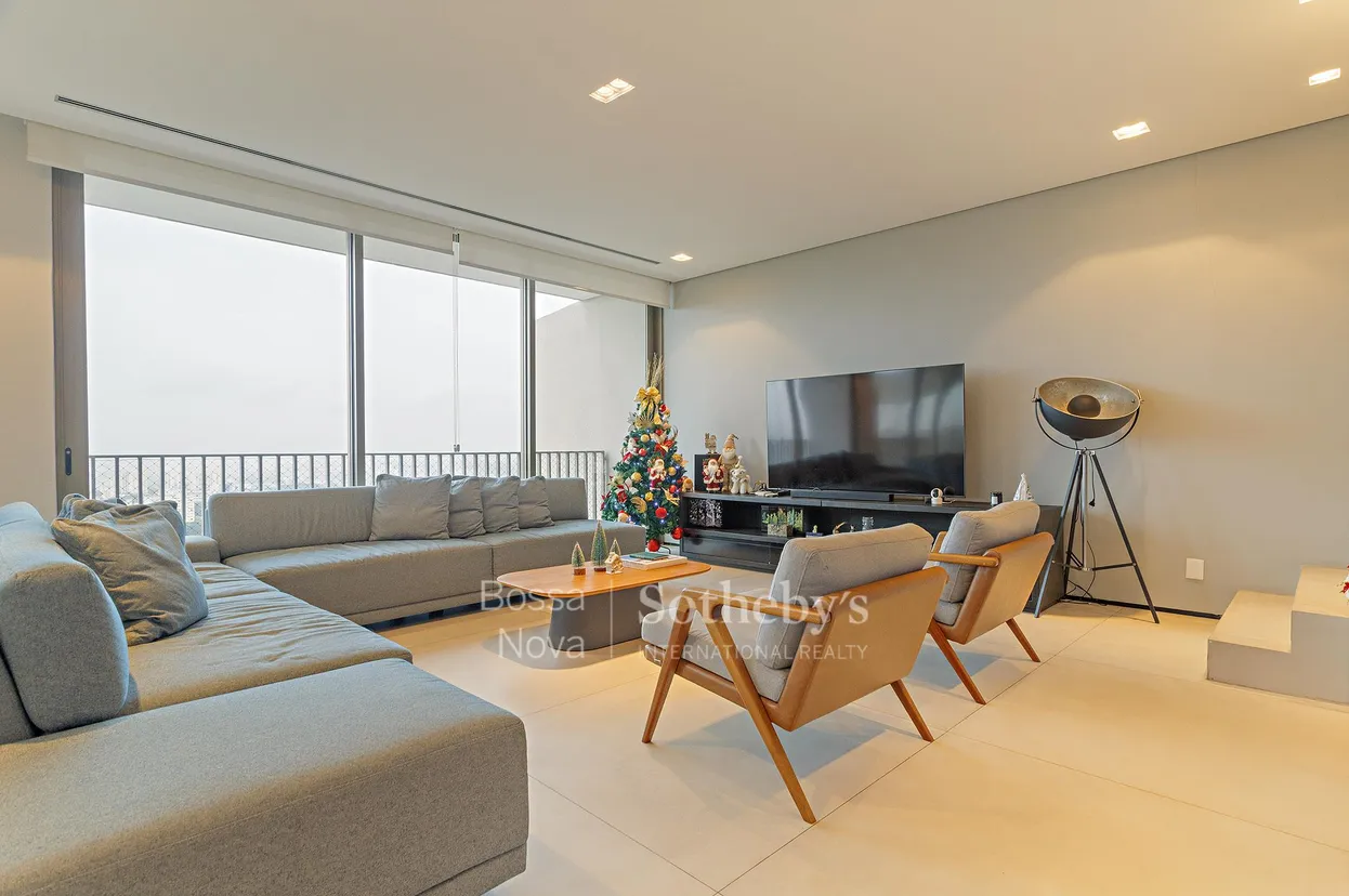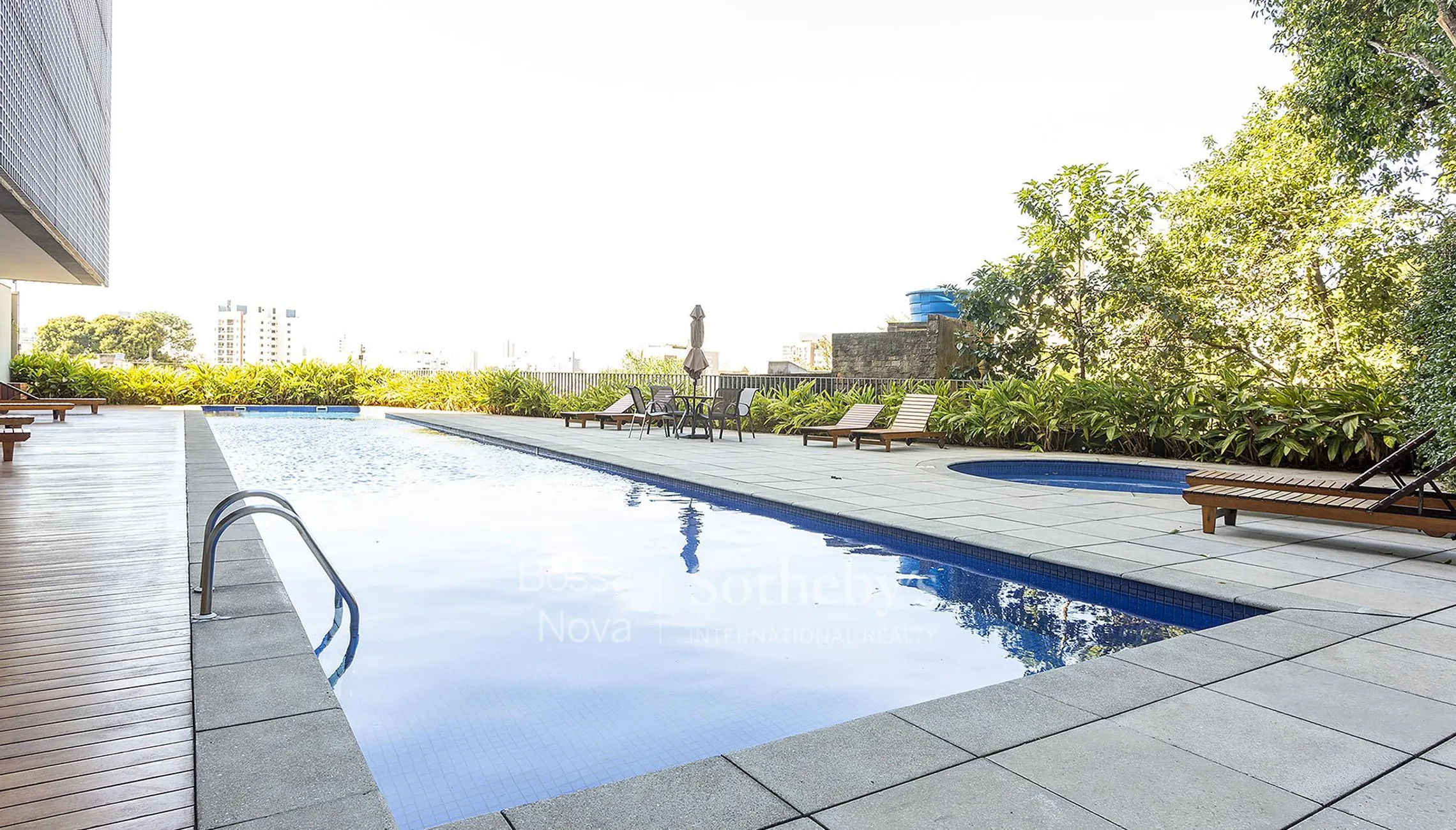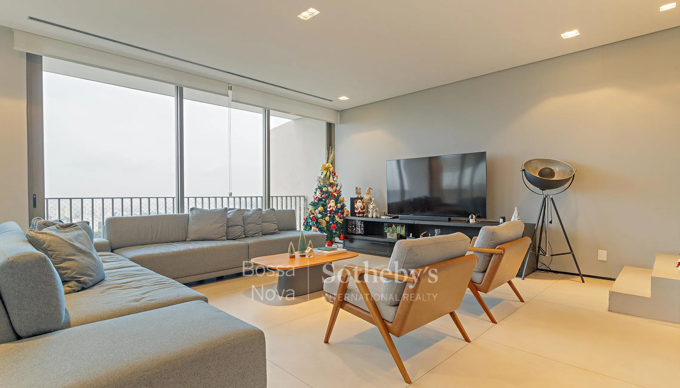 Cobertura duplex com vista livre, localizada em edifício com projeto arquitetônico assinado por Isay Weinfeld. O imóvel apresenta boa incidência de luz natural e vista aberta em diferentes orientações. A área social conta com living amplo integrado à sala de jantar e à cozinha aberta, formando um conjunto fluido e bem distribuído. A área íntima dispõe de três suítes com marcenaria planejada, incluindo a principal com closet. No pavimento superior, a cobertura oferece piscina aquecida, jacuzzi, espaço gourmet e home theater de uso privativo. O condomínio complementa a proposta com áreas comuns voltadas ao lazer.