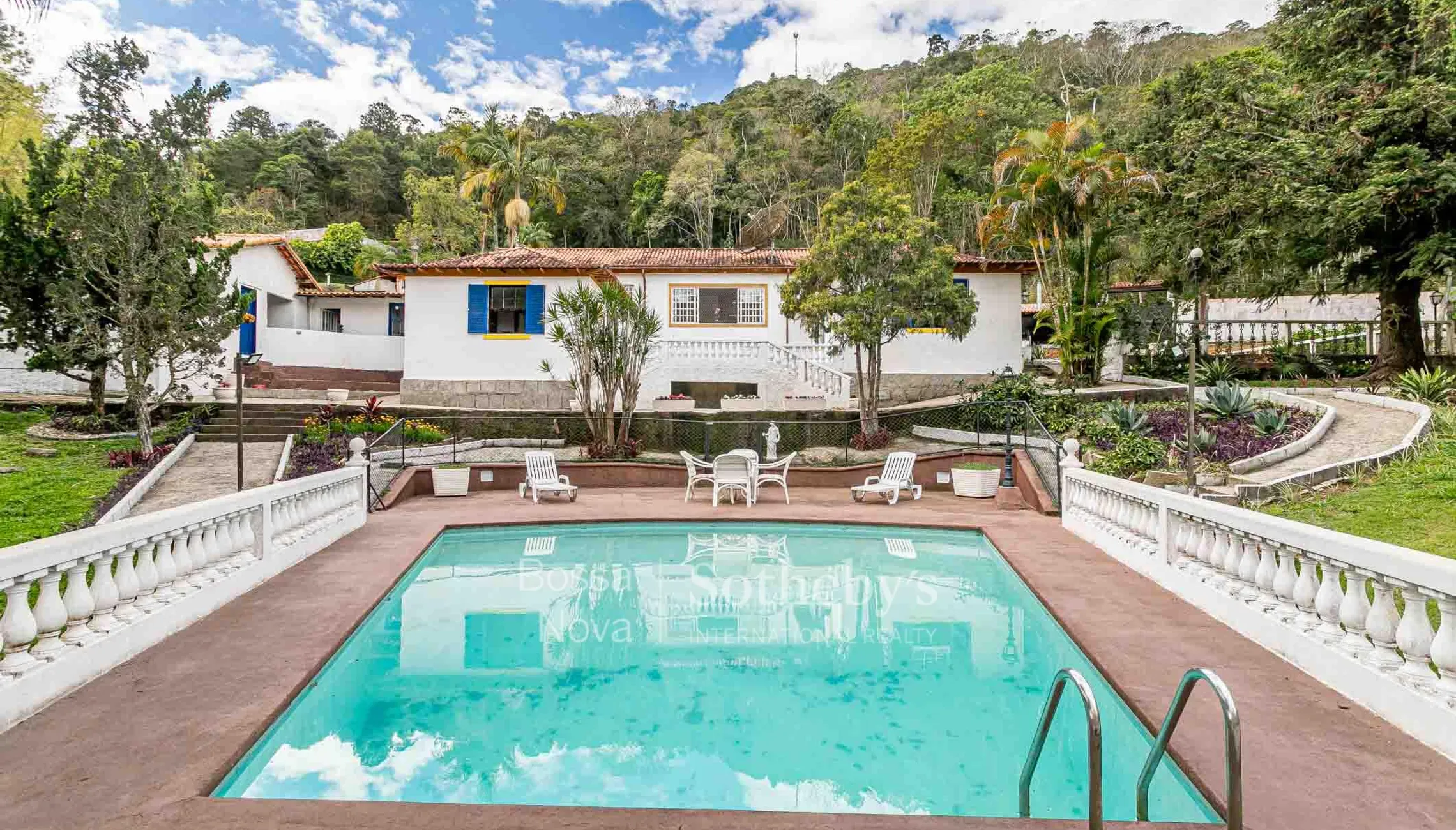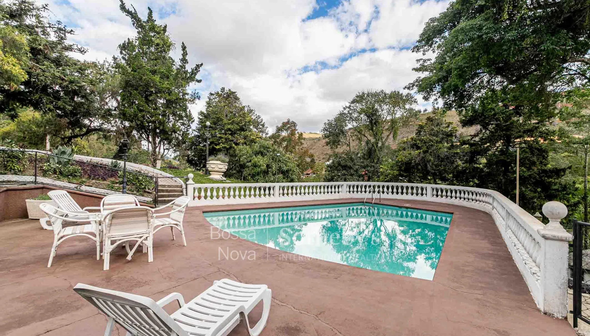 Residência tradicional em terreno amplo, totalmente murado e cercado por área verde, com construção sólida em alvenaria e possibilidade de ampliação tanto na casa principal quanto nos anexos. A área externa reúne jardim formado com árvores frutíferas, horta, piscina elevada, área gourmet, sauna com sala de descanso, quadra poliesportiva gramada e espaços de apoio, além de poços artesianos que garantem autonomia de abastecimento. A casa principal dispõe de living em três ambientes, cinco quartos sendo quatro suítes, dois closets, lavabo com acabamentos clássicos, duas cozinhas, dispensas, lavanderia e dependência de serviço. O anexo oferece suíte, quarto adicional, banheiro, lavanderia e cisternas, enquanto a casa de apoio conta com dormitórios, áreas de convívio, cozinha e canil. A propriedade combina estrutura robusta, ambientes amplos e contato direto com a natureza, favorecendo usos familiares e a integração entre os espaços.